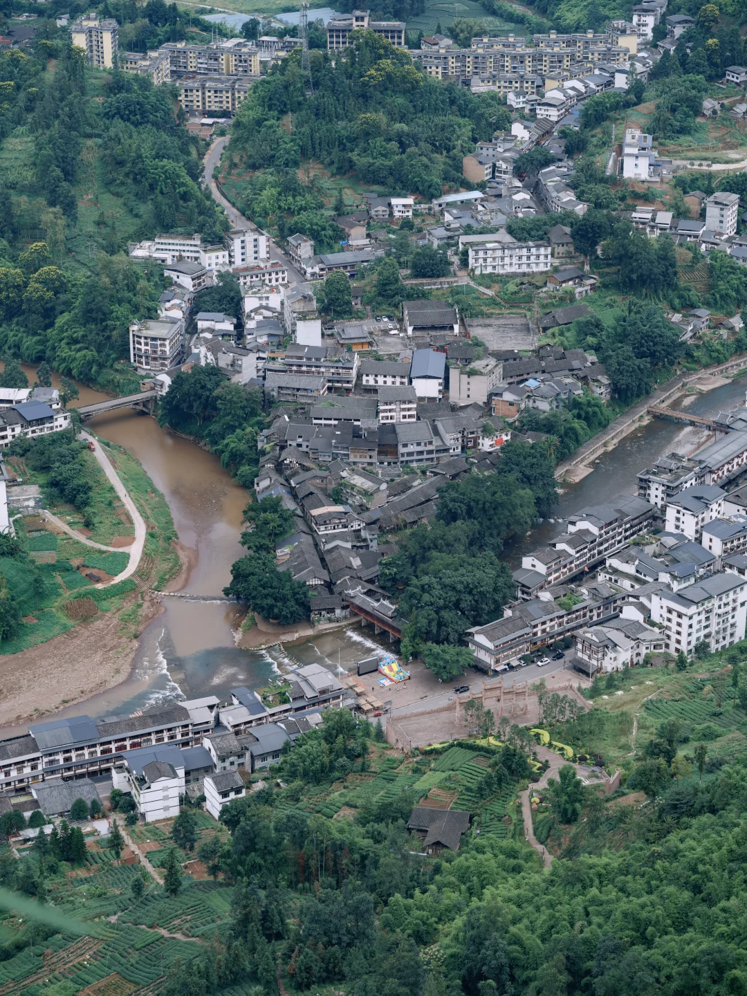 宋代始建的古镇至今保留着全木质街坊系统,千余间穿斗式木房依山而建,青石板路总长超千米。必去清光绪年间的龙华凉桥,40米长的木构风雨桥藏着"鱼嘴分水"设计
