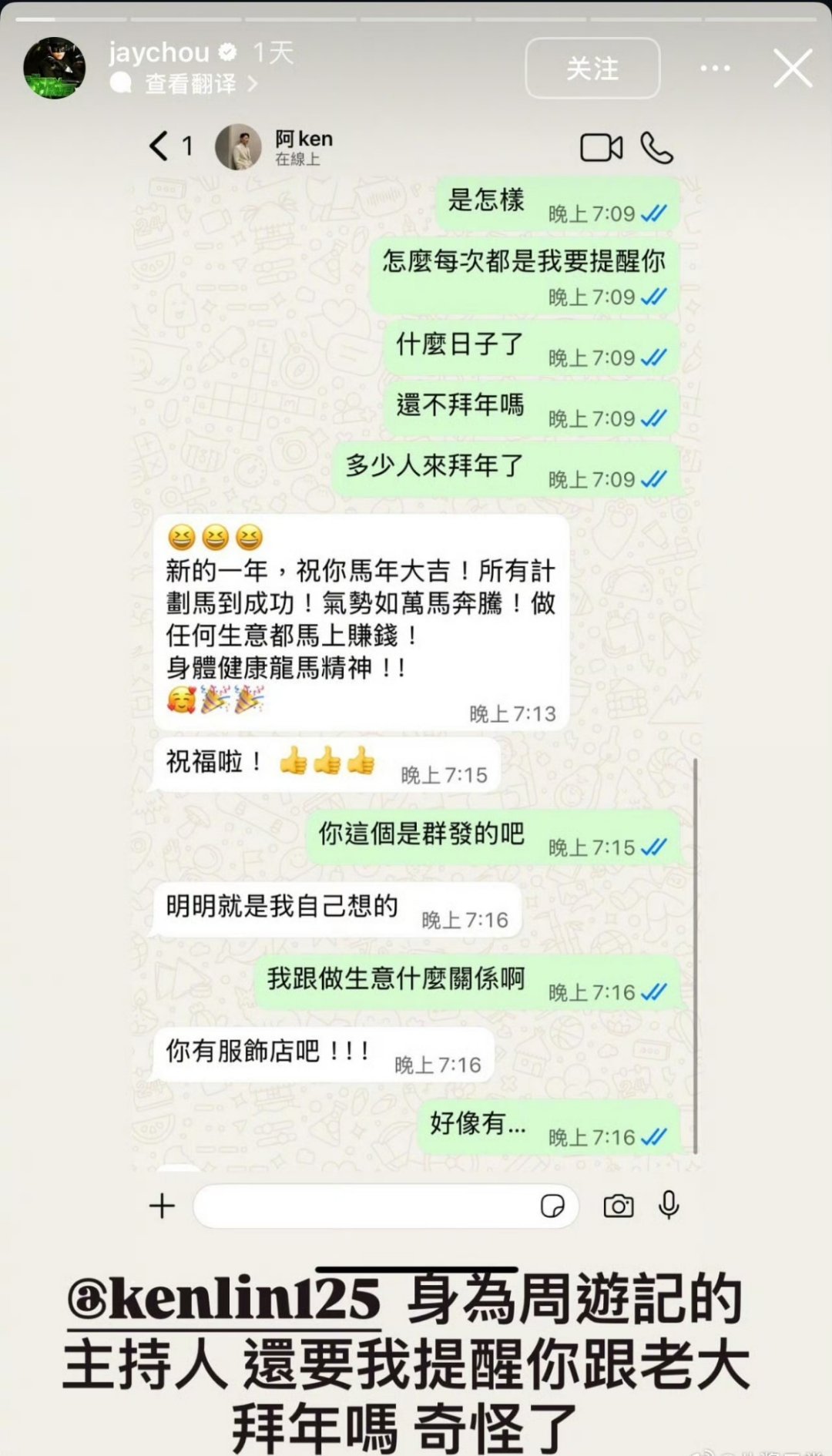 周杰伦点评给他拜年的朋友收到满屏拜年消息,周杰伦逐一暖心点评。精准记住对方近况,还会画可爱涂鸦回应,天王私下温柔又细心,这波双向奔赴太戳人。