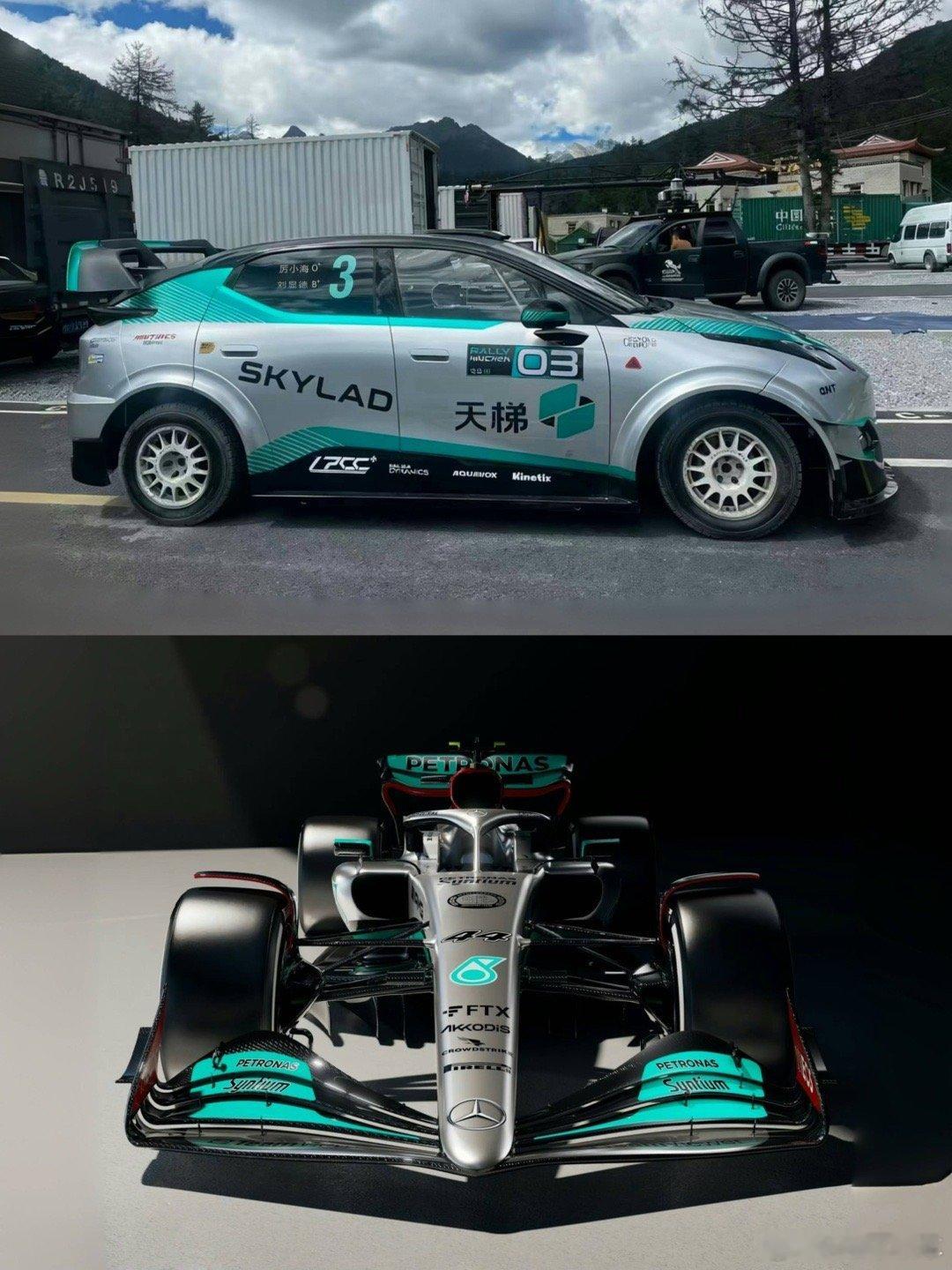1、天梯车队——梅赛德斯奔驰「图1、图2」沙溢的白衬衫着装一出现,这不就是马桶狼东北分狼么?天梯车队的赛车用的是“爆改”的领克Z20,但涂装颜色非常接近W13的GT银+马石油绿