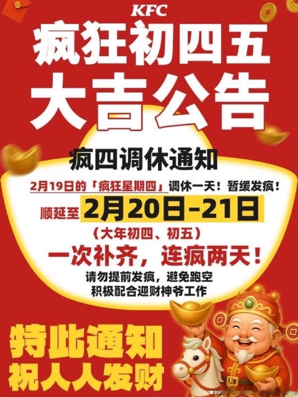 疯狂星期四调休没事,我还在乡下,吃不到肯德基疯狂星期四
