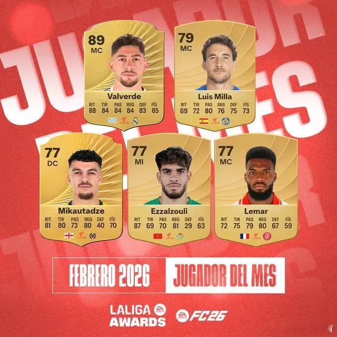 西甲官方公布2月份最佳球员候选:巴尔韦德、勒马尔在列