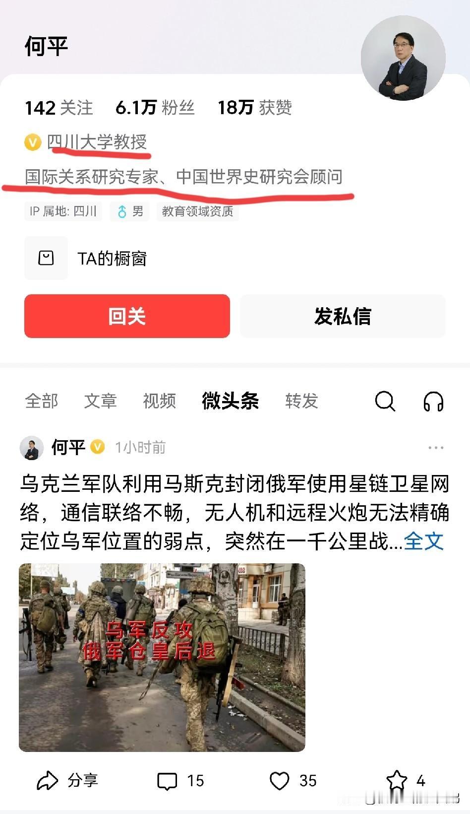 又一个自诩国际问题研究专家的教授,这水平跟储大大网红相比,也不逞多让啊。 啥?俄军依赖马斯克的星链打仗?没有星链就各种制导武器定位不准了? 不得不说,大学里的简中乌友是连俄罗斯的格洛纳斯卫星系统都不了解啊……他们闭门造车的本事不是一般的 骚。 肥鹅发现,简中乌友这个群体是真有意思,它们就不能统一下口径吗?一部分说,星链不能用于战争,一部分又说没有星链俄罗斯就一败千里。 那么问题来了,星链到底有没有军事用途?乌友们能不能先统一下口径啊[笑哭][笑哭][笑哭] 俄罗斯用星链,或者说依赖星链打仗,这一本正经胡说八道的水平令人叹为观止,怪不得简中网络中乌军一直赢赢赢,现实中却输输输。 在肥鹅看来,没有底线谎报战报一直是美西方打仗的利器,毕竟舆论战和信息战确实是他们的拿手好戏。这种手段对付小国或中型国家无往不利,但在面对军事大国是掀不起什么大浪的。