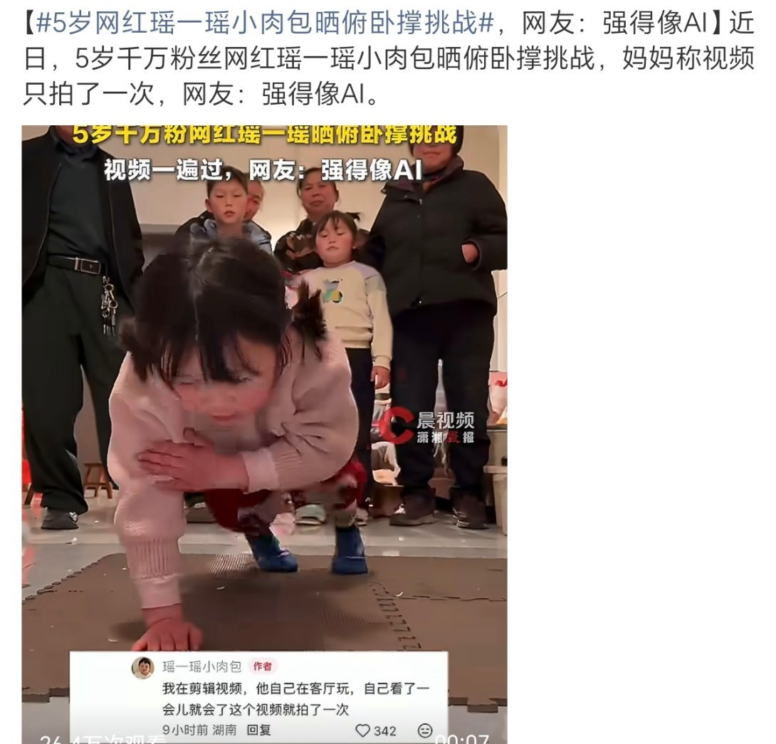 5岁网红瑶一瑶小肉包晒俯卧撑挑战蛮牛的小孩子在运动方面会有一些大人觉得是“天赋”的点