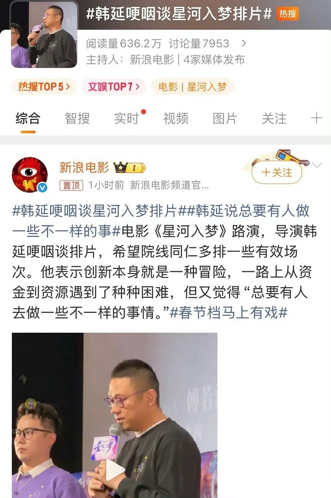 星河入梦导演哽咽说排片太少了。