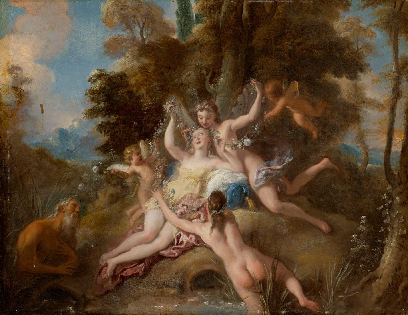 西洋历史文化鱼缸 法国画家JEAN-FRANÇOIS DE TROY(1679-1752)的作品《仄费罗斯与花神》。仄费罗斯是希腊神话中的西风之神,他掳走了美丽的宁芙克洛里斯,婚后将她转变为花神佛洛拉。