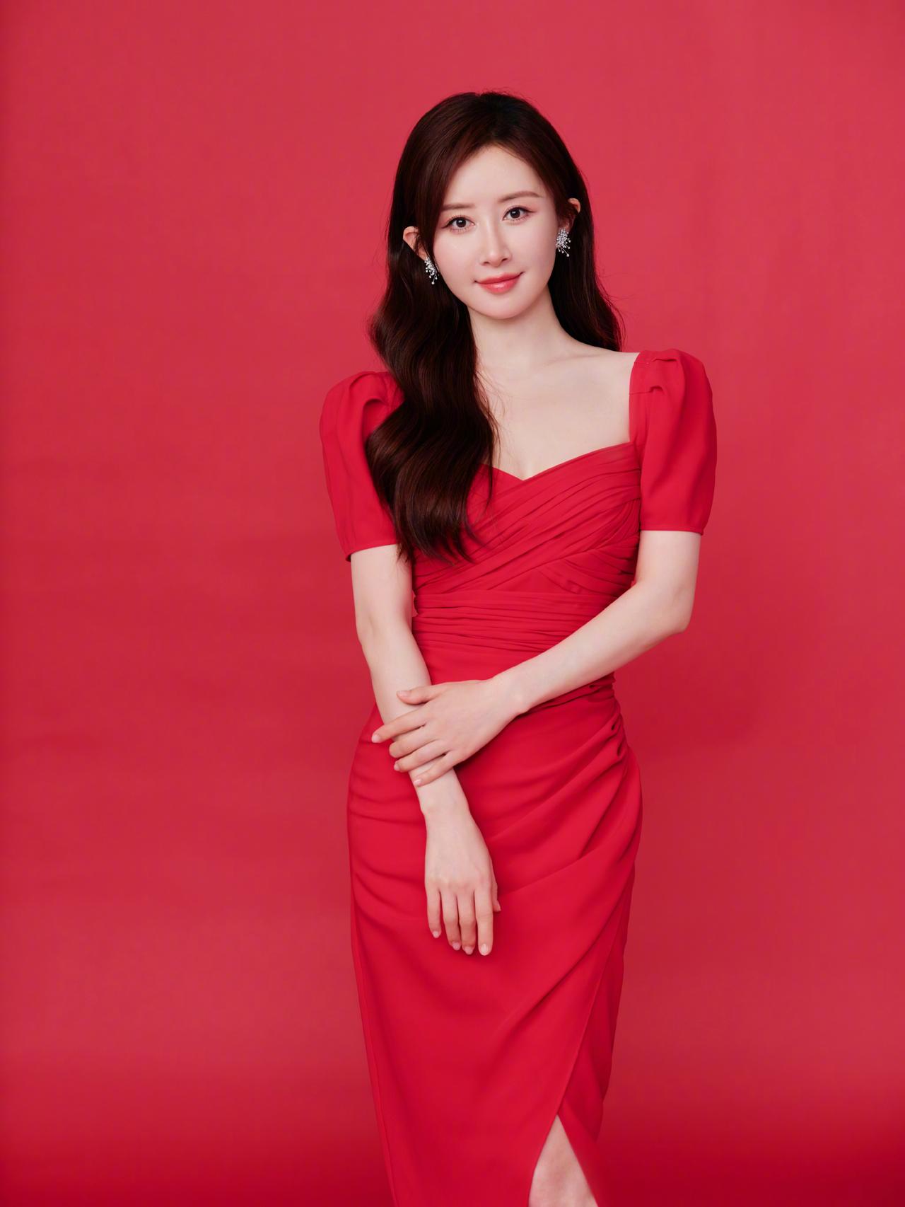 舒畅, 红彤彤的背景, 红彤彤的长裙, 这喜庆劲, 祝她和我们大家马年吉祥,万事顺意!!!