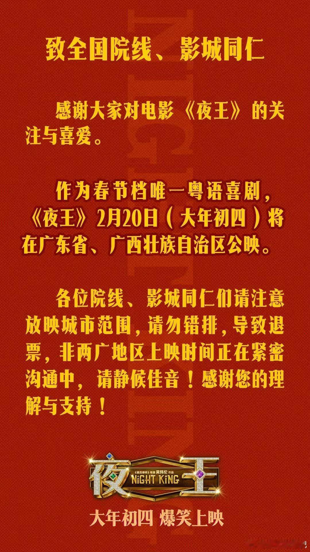 目前《夜王》除两广地区的排片都是错的,大家不要错买,等一个真正的好消息吧。