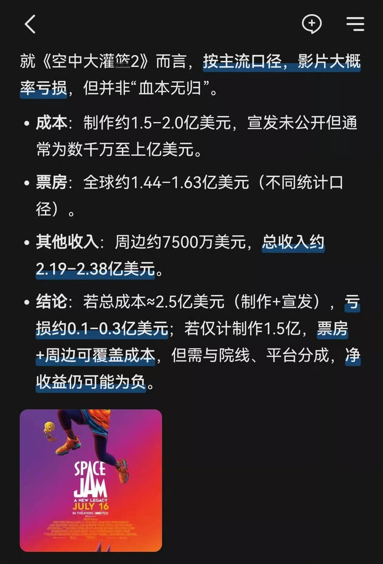 为啥库里干啥啥成功,詹姆斯干啥啥不行?同样是推广电影,差距咋这么大? 国外网友评论詹姆斯的电影《空中大灌篮》:“离谱的剧情离谱的演技,活该亏了2.5亿美金”。 库里首次担任制片人的动画电影《GOAT》,2月13日在北美上映,首周票房突破5000万美元。