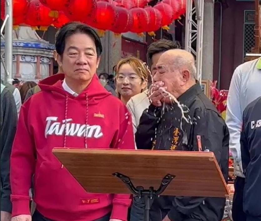 倒霉的台湾地区领导人赖清德年初二(18日)到台南发福袋期期间,旁边的庙宇主持疑感染病毒不适,反胃作呕大喷发,呕吐物飞溅中赖清德的身上。 当赖清德在听立委陈亨妃致辞时,在其身边的祀典武庙主持林培火突然用手摀住嘴巴,但大量呕吐物仍凌空飞喷,部份溅中赖清德的手臂和身上。 活动随即中断。 赖清德随后表示,初步了解,林培火家中有家人感染病毒,林培火受到影响,目前健康状况没有大碍。林培火事后亦表示,是因为儿子跟媳妇都得了诺罗病毒,自己也被感染,吐一吐就好了,抱歉,自己忍不住。
