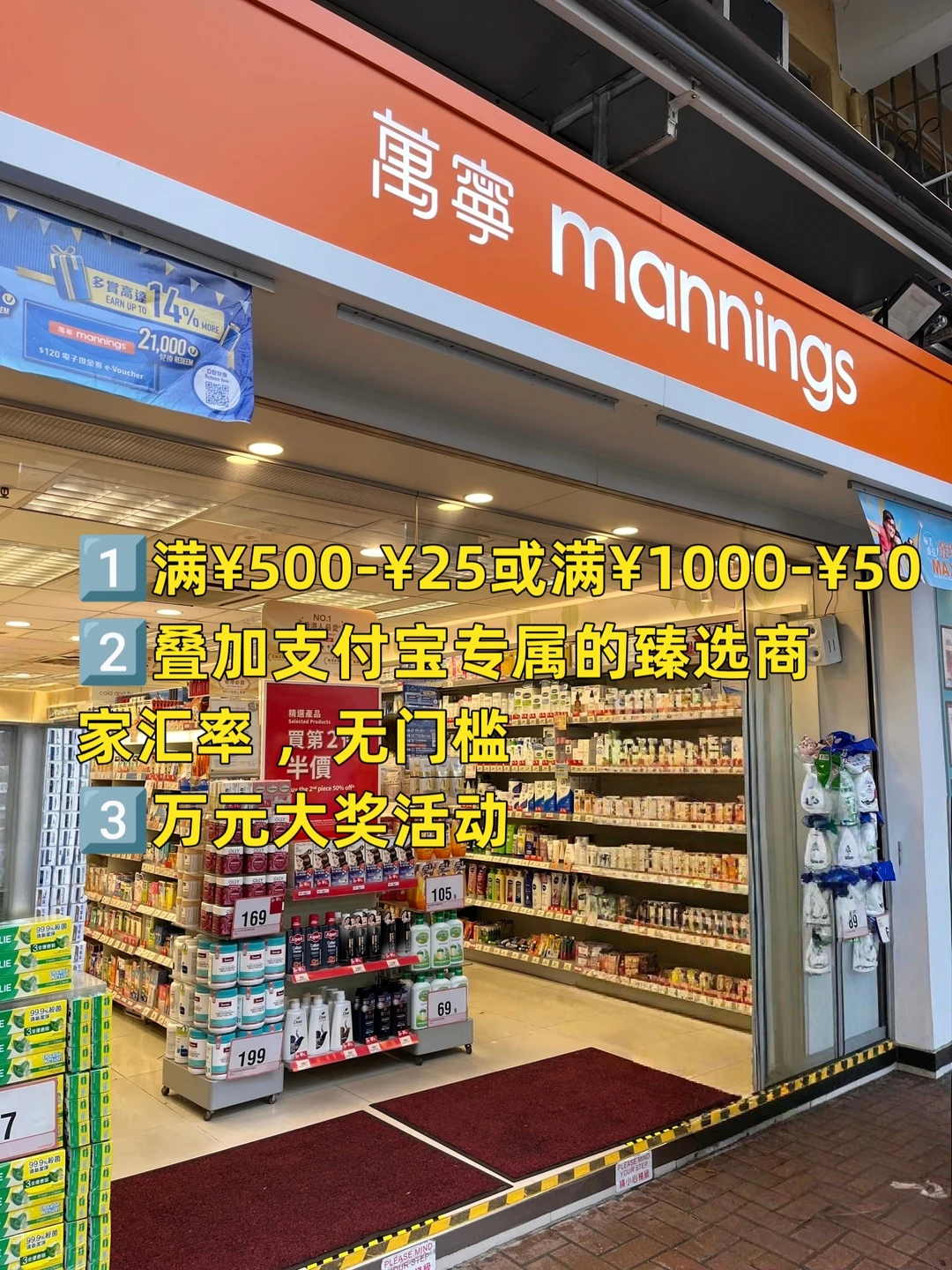 1⃣满¥500-¥25或满¥1000-¥50