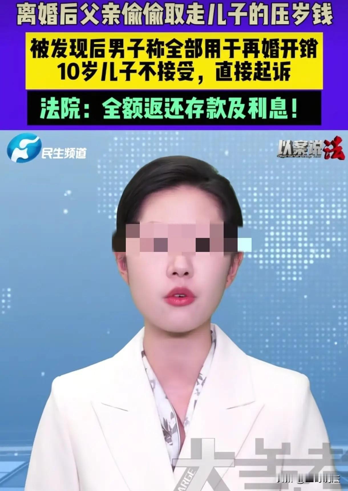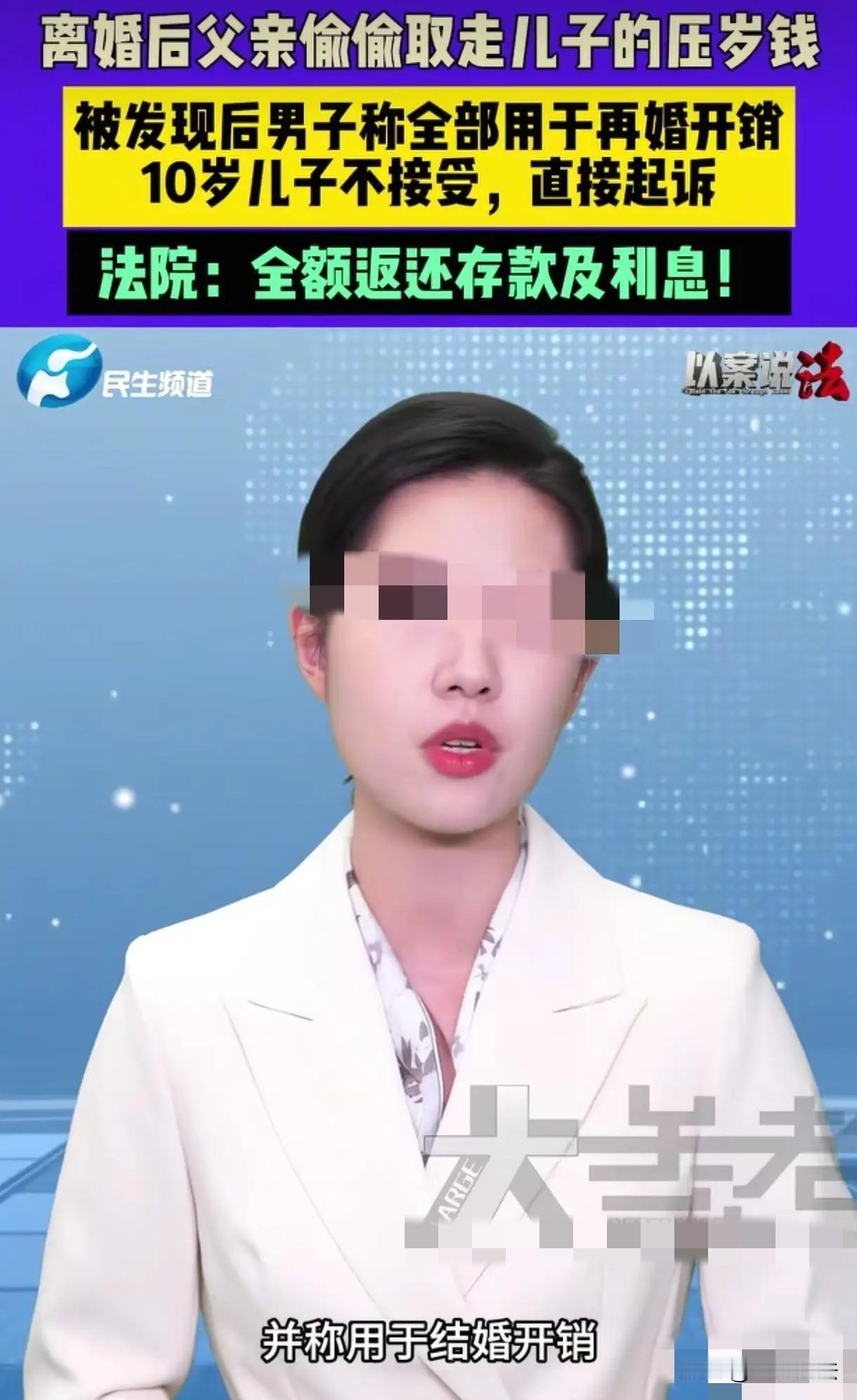 “太离谱了!”河南郑州,一10岁男孩父母离婚,他和父亲一起生活,不久父亲再婚,男孩又跟母亲生活,可是他突然发现,自己8万元压岁钱被父亲取走花到他再婚家庭,男孩质问父亲,父亲却说,你是我儿子,你的钱就是我的钱!男孩告到法院,要求父亲全部归还。 小辉怎么也没有想到,父亲母亲离婚,父亲非要争夺抚养权。 可是,他抢走了小辉,又不善待,他很快就结婚,小辉成了多余之人。 小辉从此以泪洗面,面对后妈他手足无措,父亲啥也不管,对小辉的委屈他看不见,小辉只有10岁的年龄,父亲只会说他调皮捣蛋。 到了最后,小辉实在待不下去,他找母亲,经过一番协商,小辉终于和母亲团圆。 他收拾东西,搬进了母亲的住所,俩人一番整理,发现小辉的压岁钱不见了。 小辉原本把压岁钱藏的很深,那是他10岁之前,每年收到的爷爷奶奶,姥姥姥爷,还有亲朋好友们给他的压岁钱。 他从小节俭,从不乱花收到的钱。 压岁钱每年累计,到他10岁时,已经攒到了80000元。 小辉有了这笔积蓄,他走路带风,那是他最后的底气。 和父亲生活期间,父亲对他爱理不搭,小辉曾经想过,一旦长大,他就会拿着压岁钱去找自己的母亲。 万幸的是,父亲有了新的家庭,早就已经对小辉无暇顾及。 既然他想跟着亲生的母亲,继母求之不得,一刻不停赶紧让他滚出去。 小辉带着自己的行李,还有自己的全部家当,他满怀希望,想拿着80000员重新开始新的生活。 可是,这笔钱明明放的好好的,却被母亲发现,这笔钱早就不见了。 经过一番询问,小辉这才知道,父亲再婚时就把这笔钱拿走用了。 小辉虽小,但是非常的懂事,压岁钱是他私人财产,父亲竟然未经他的同意,就拿走了,花在他新的家庭里。 在小辉父亲心里,儿子啥也不是,他当初非要儿子,也不过是为了争一口气! 小辉不愿意了,在那个家庭,他并没有被善待过,那段日子对他来说,就像一段可怕的噩 梦。 他看尽了脸子,受尽了委屈,那8万块压岁钱,是他最后的底气。 他曾经想过,要逃离出来,远离父亲再婚的家庭。 他在这里,就是草芥一根,只有回到妈妈的怀里,他才是那个有妈的宝贝。 谁知父亲 脸 都不顾了,私自偷摸拿走花了,小辉火冒三丈,立刻找到父亲质问。 谁知父亲大言不惭,他告诉小辉: 我结婚需要开销,这些钱我先拿去用了。 父亲又说: 反正你是我的儿子,你的钱就是我的钱! 小辉泪流满面,那些钱是他每一年过年,当别的小朋友拿着钱买零食时,他忍住了。 买玩具时,他也忍住了,那是他一点一滴攒下来的,他希望攒够十万,就能实现他第一个小目标。 他没有想到,父亲竟然这样的人,他这才知道,为啥母亲和父亲非要离婚,这样的父亲,没有一点责任! 小辉苦苦哀求,要父亲把他的钱归还给他,父亲拒绝,一分钱都不愿还。 小辉伤心欲绝,在母亲的支持下,小辉告到法院,要求父亲归还他所有压岁钱及利息。 有人认为,这种男人,是哪个有福的女子接盘了?真替她感到幸福,好日子在后面等着她呢! 也有人说,压岁钱说到底,其实是父母的钱,别人给你娃,你同样要给别人娃钱。 可就算这样,也应该跟前妻一人一半吧,还有就是,如果你孩子不出生,难道你就不给别人孩子压岁钱了? 而事实上是,拿孩子的钱娶老婆,一点脸面都不要了? 《民法典》第657条规定: 赠与合同是赠与人将自己的财产无偿给予受赠人,受赠人表示接受赠与的合同。 压岁钱是长辈对孩子的无偿赠与,一旦钱交到小辉手里,所有权就完全属于他,跟父亲的“礼尚往来”没任何关系。 也就是说,父亲给别人孩子也发了红包,那是父亲单独的人情支出,不能抵消小辉的个人财产。 之前也有类似判例,明确父母离婚时不能分割孩子的压岁钱,挪用的必须全额返还。 《民法典》第35条规定,监护人应当按照最有利于被监护人的原则履行监护职责。监护人除为维护被监护人利益外,不得处分被监护人的财产。 未成年人的监护人履行监护职责,在作出与被监护人利益有关的决定时,应当根据被监护人的年龄和智力状况,尊重被监护人的真实意愿。 也就是说,监护人只能为了孩子的利益才能动用孩子的财产。 比如交学费、看病,像小辉父亲把钱拿去给新家用,完全跟小辉的利益无关,属于违法处分被监护人财产。 最高院典型案例也已经明确,这种情况不仅要返本金,还得赔付相应的利息。 小辉已经10岁,属于限制民事行为能力人。 他对自己的压岁钱有一定的自主决定权,父亲擅自取走,没有尊重他的意愿。 简单说,父亲那句“你的钱就是我的钱”在法律上站不住脚,小辉的8万是实打实的个人财产,父亲必须全部返还。 因此,法院判决,小辉父亲返还小辉压岁钱和利息。 对此,你怎么看?