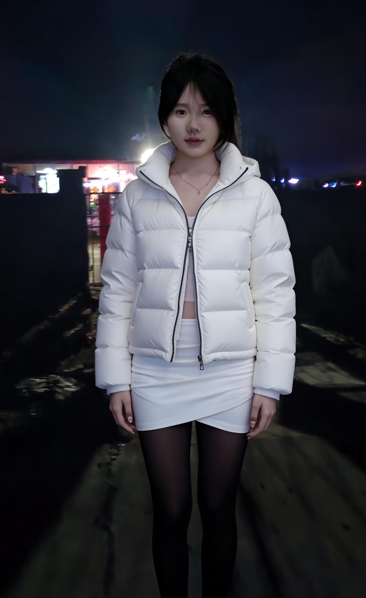 晴日长街素袂扬,针织长衫裹柔光。 灰裙轻曳尘边步,软靴微惊路畔香。 车影遥随云脚