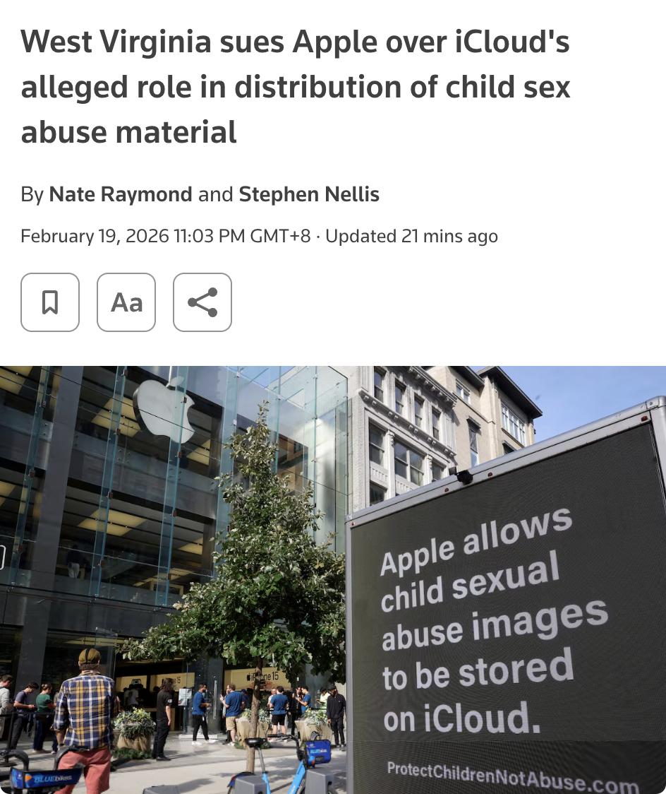 外媒:美国西弗吉尼亚州起诉苹果公司,指控其iCloud服务成为传播儿童性虐待材料的“最大平台”。 该州总检察长JB McCuskey称苹果为保护用户隐私而忽视儿童安全。 2023年苹果仅报告267起相关案件,远低于谷歌的147万起和Meta的3060万起。苹果曾计划推出NeuralHash技术扫描用户设备上的图片以检测虐待材料,但因隐私和安全担忧而取消。 该州要求苹果采取更有效措施阻止此类内容传播,并索赔。