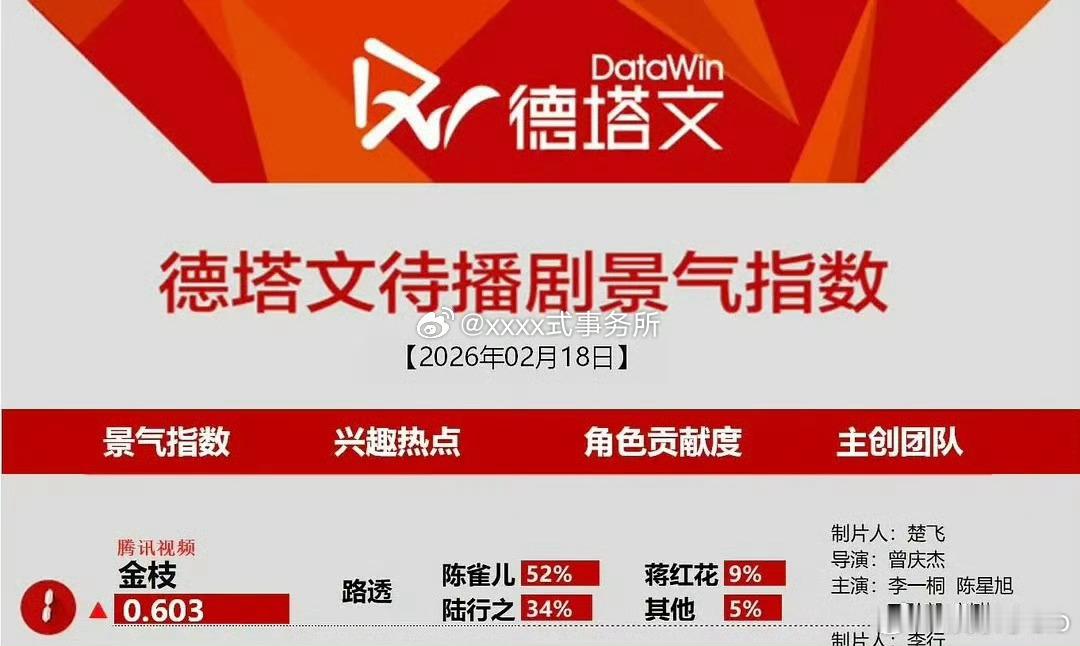 金枝从2月10开机到现在十天有七天都是待播剧第一,一番女主李一桐陈雀儿贡献度也是第一