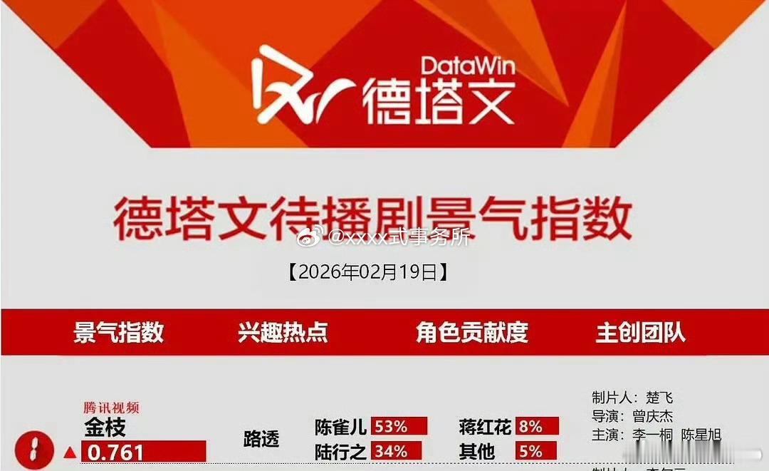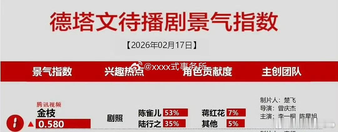 金枝从2月10开机到现在十天有七天都是待播剧第一,一番女主李一桐陈雀儿贡献度也是