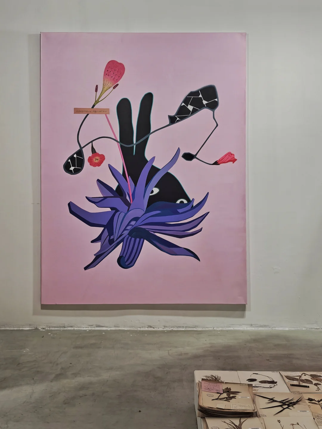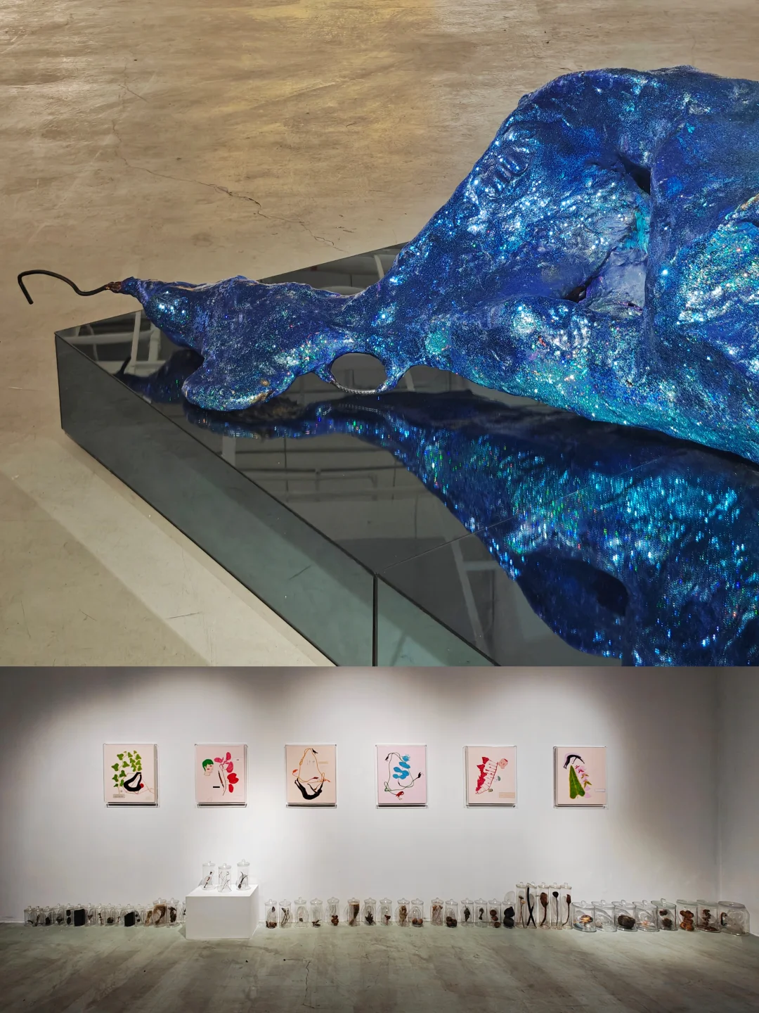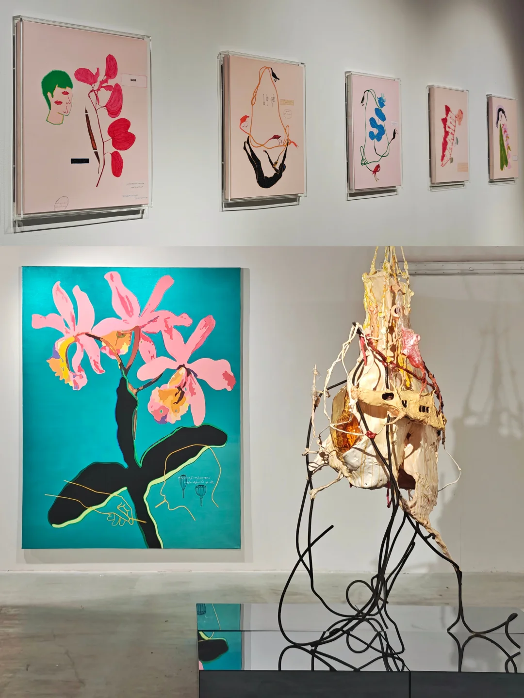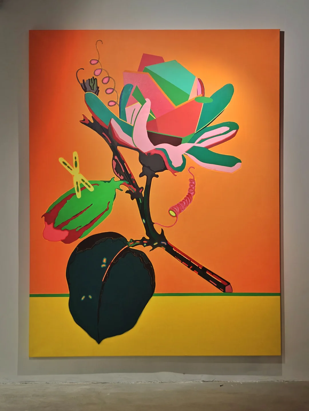 ☘️布展强化了观展的仪式感,极具视觉冲击力,多件巨型昆虫立体装置与色彩对比强烈的大画幅作品,共同构建出一个层次丰富的植物神殿。