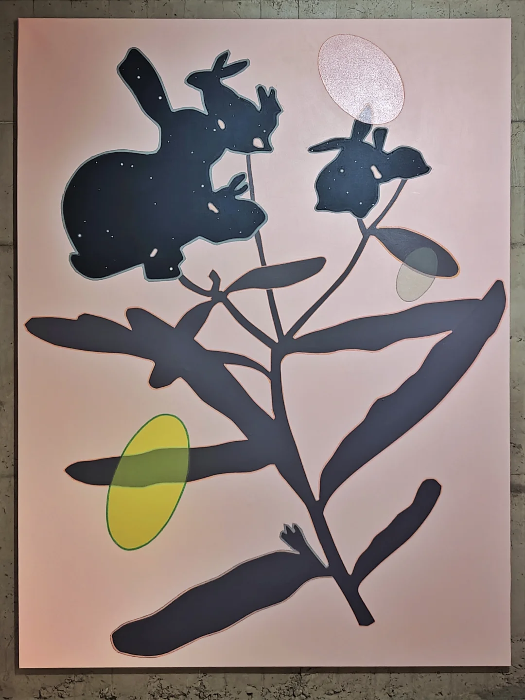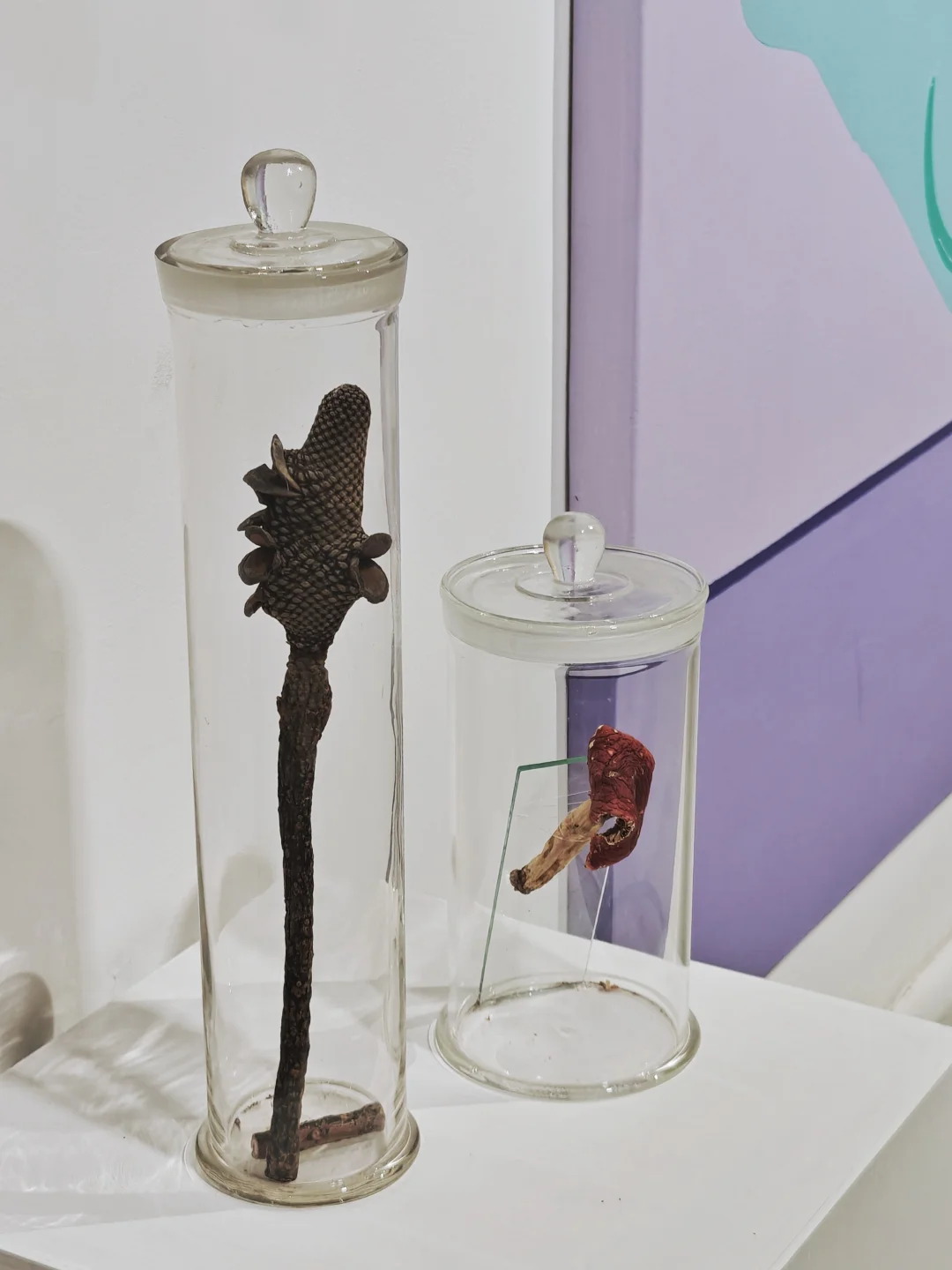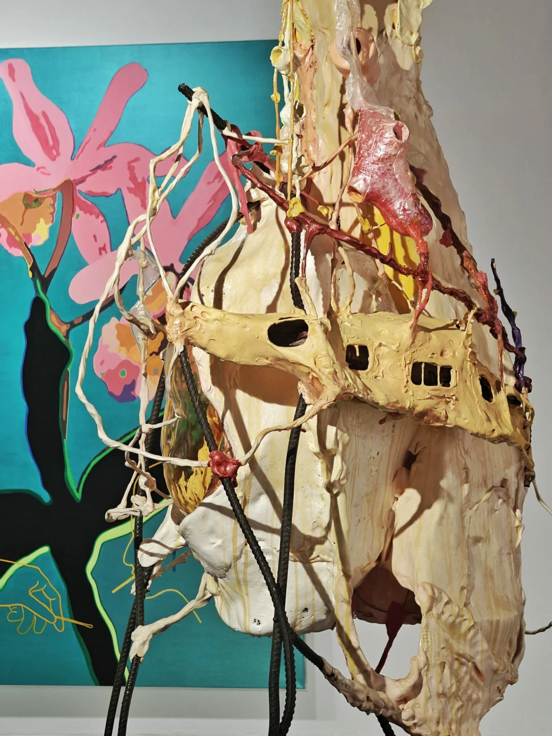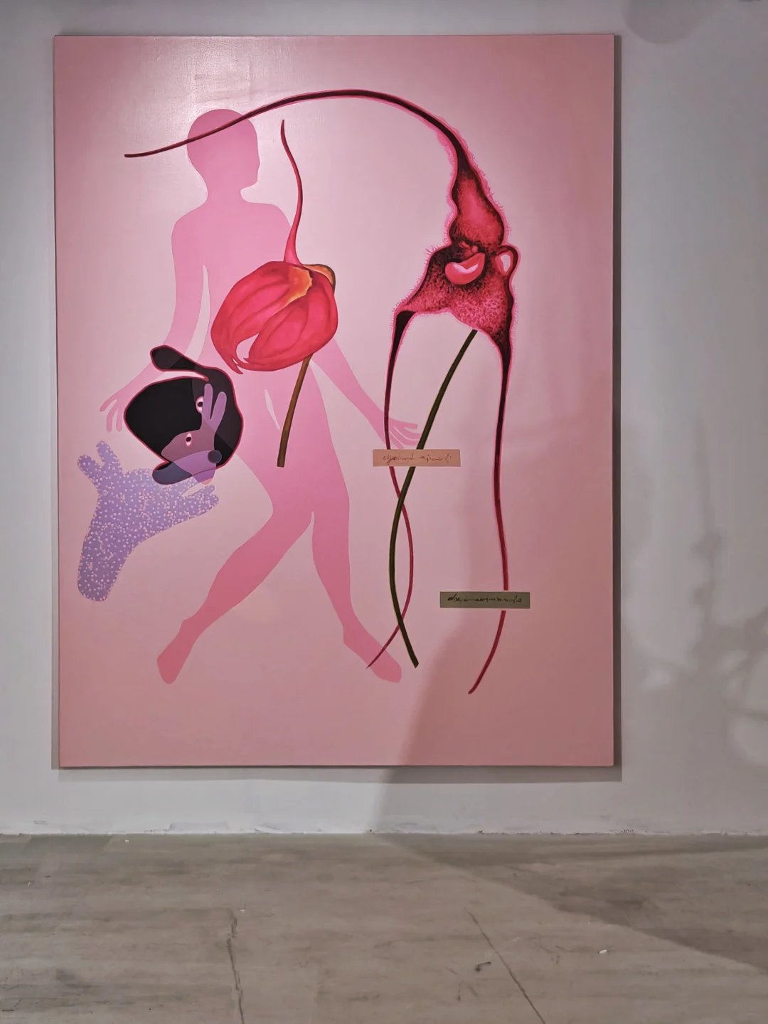 ☘️布展强化了观展的仪式感,极具视觉冲击力,多件巨型昆虫立体装置与色彩对比强烈的大画幅作品,共同构建出一个层次丰富的植物神殿。