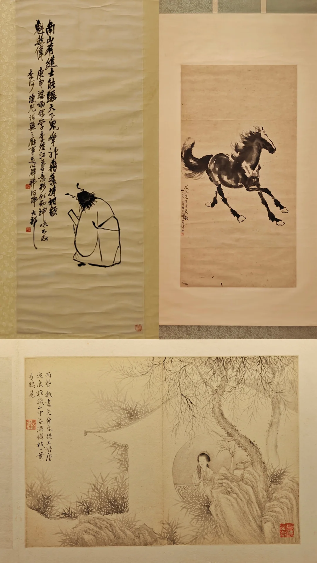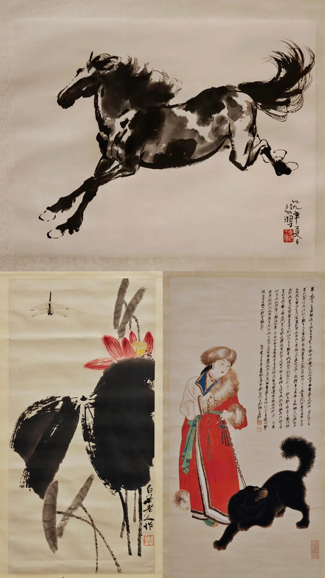 🐎马年必看徐悲鸿的马,四幅开篇组品分别为《驰远》《瞻途》《留云(木版水印)》《渊渟》(饮马图系列中的一幅,同期上博人广馆的马年特展中也有一幅单马的,🔗放plq)