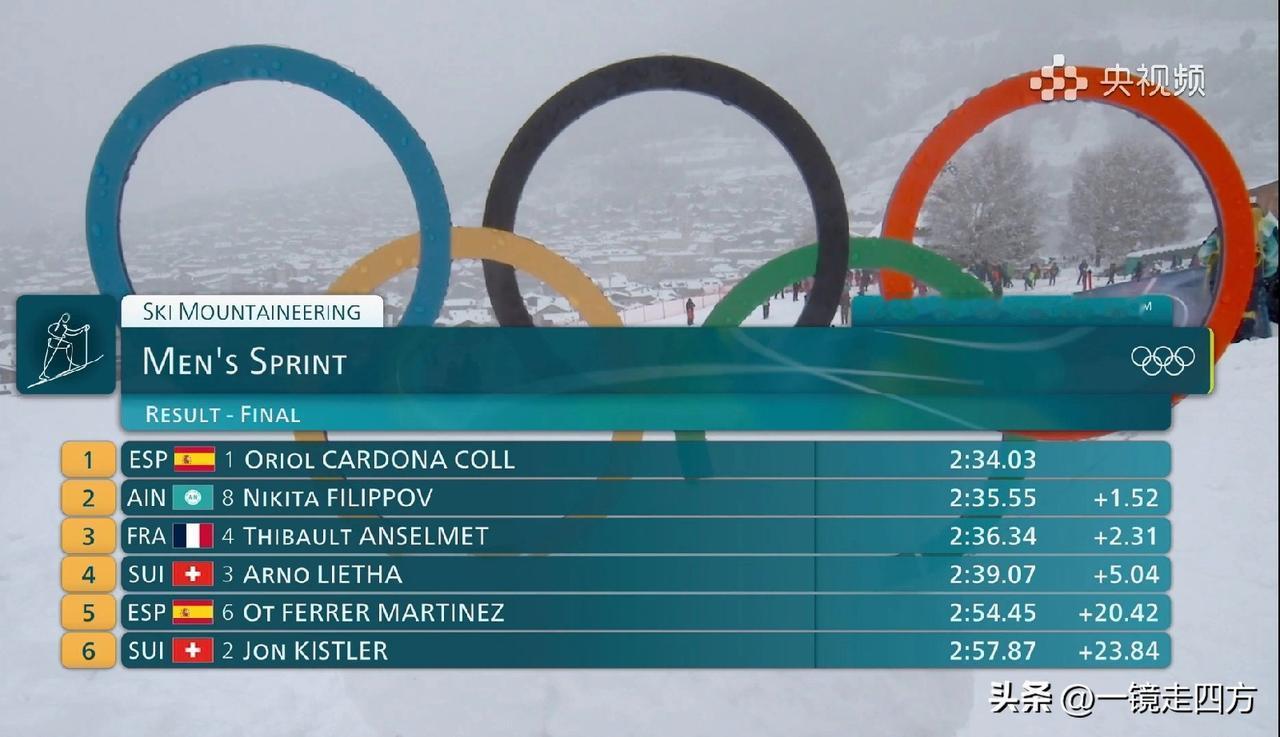 冬奥会102年来的首个滑雪登山男子短距离冠军产生,西班牙选手科尔以2分34秒03夺得金牌,为西班牙时隔54年再获冬奥会金牌,中立选手菲利波夫和法国选手安塞尔梅分获银牌和铜牌,来自中国的20岁小将、哈尔滨亚冬会该项目冠军布鲁尔表现出色杀进了半决赛,但仅差一名未能晋级决赛。