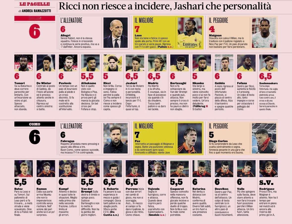 🔴⚫️ 拉斐尔·莱奥🇵🇹最高分;迈尼昂🇫🇷最低分。sempremilan意甲联赛