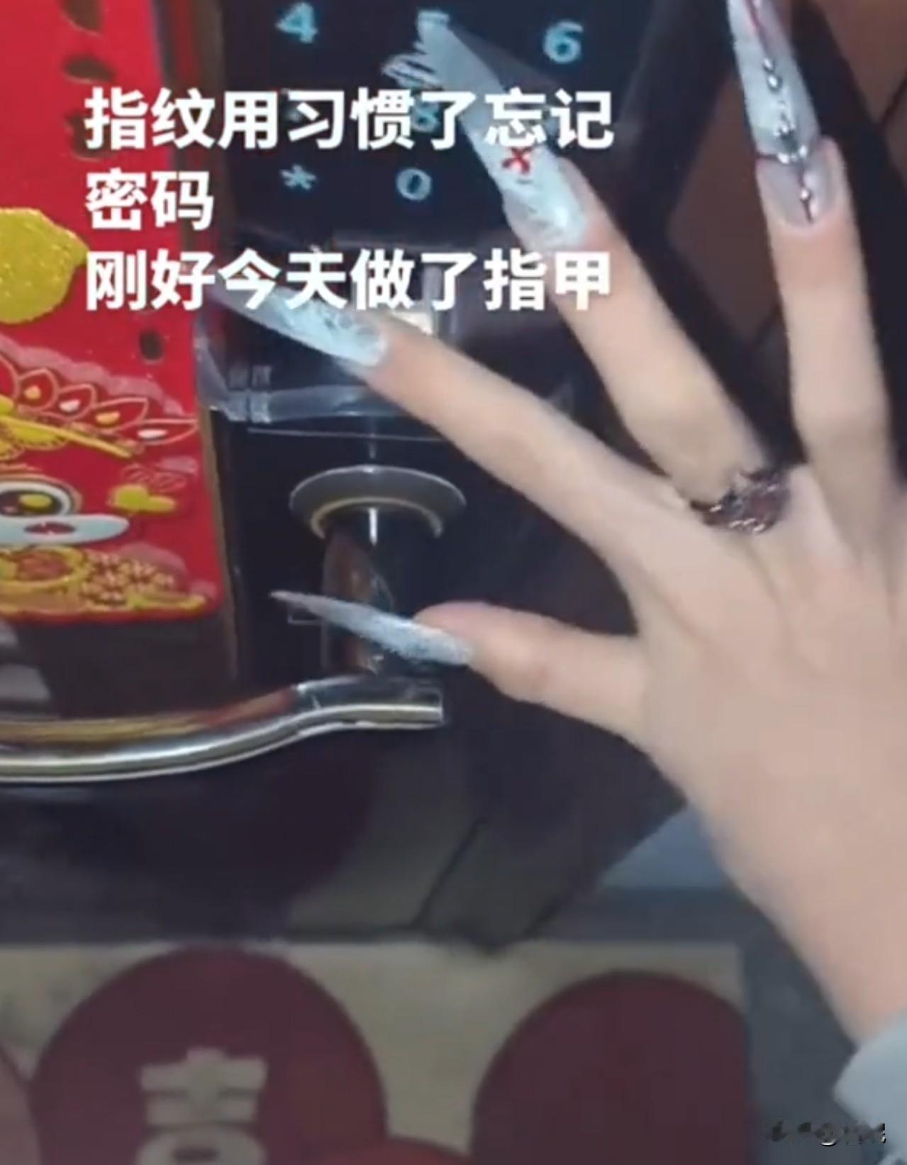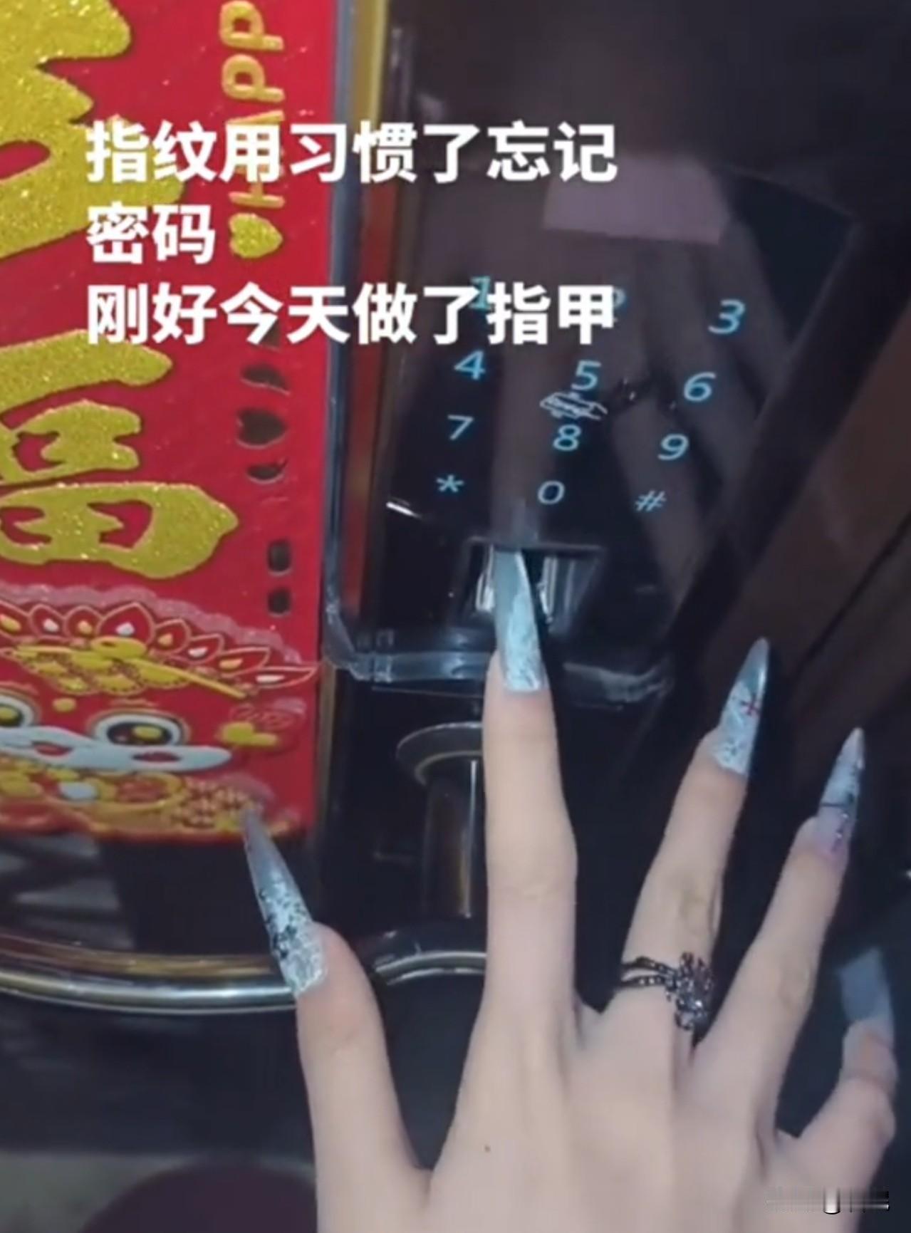 人生最悲惨的事莫过于此! 一女子刚做完超长美甲,却变成回家“拦路虎”。密码忘记了,指纹因为超长美甲的阻碍无法识别。她不停的换角度,但是还是以失败告终。 这手纤细白净,好看。这超长美甲,我欣赏不来。事实证明,打败自己的有时候可能不是别人,有可能是自己的美甲。 没事,剪掉按指纹的美甲,就能识别指纹了。如果舍不得美美的,那就叫开锁师傅吧,顺便换个新版的指纹锁,在门把手上,这样再超长的美甲,也阻拦不了女子回家的路。 追求时尚美丽固然没错,但有时候也要考虑实际生活的便利性。让时尚融入生活,又不影响生活的便捷,才是真正的智慧之举。