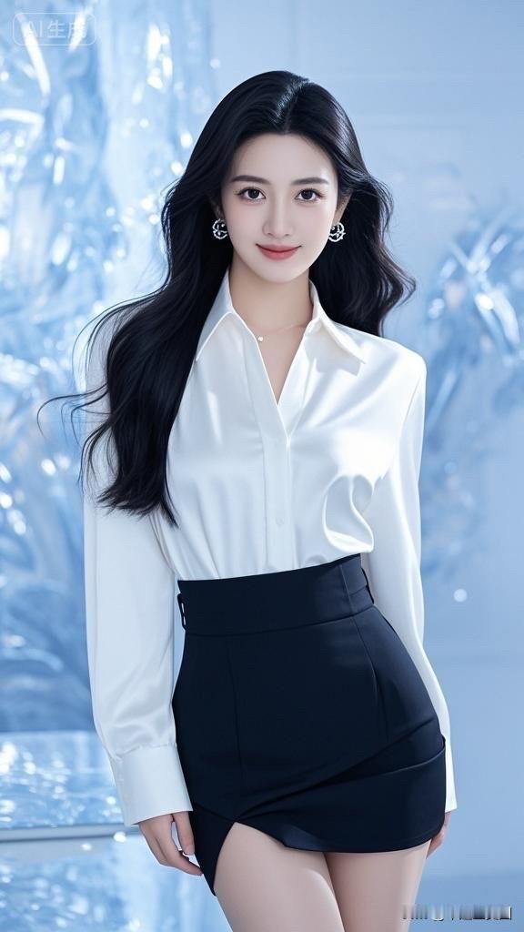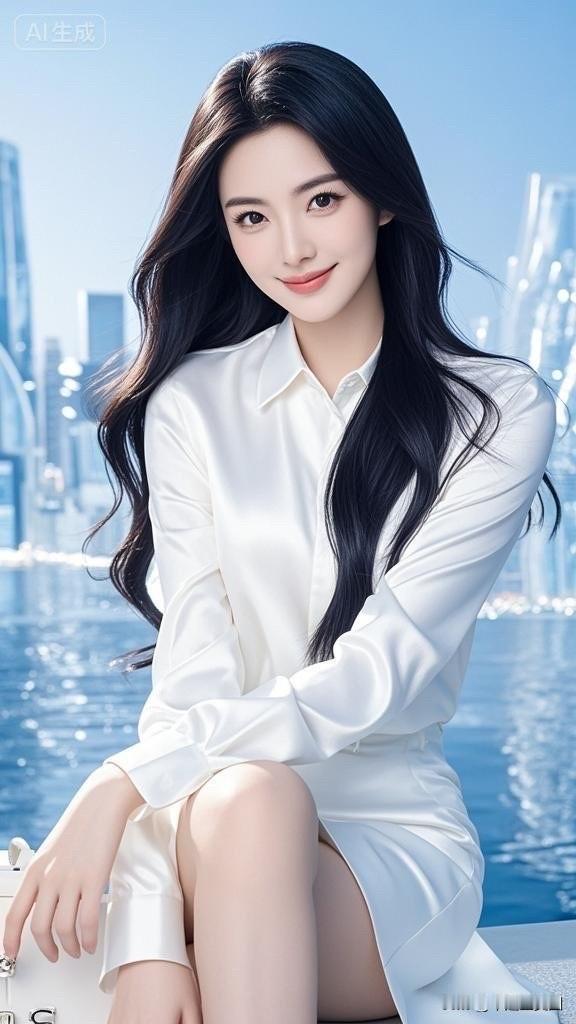 梦幻蓝裙少女,优雅气质满满