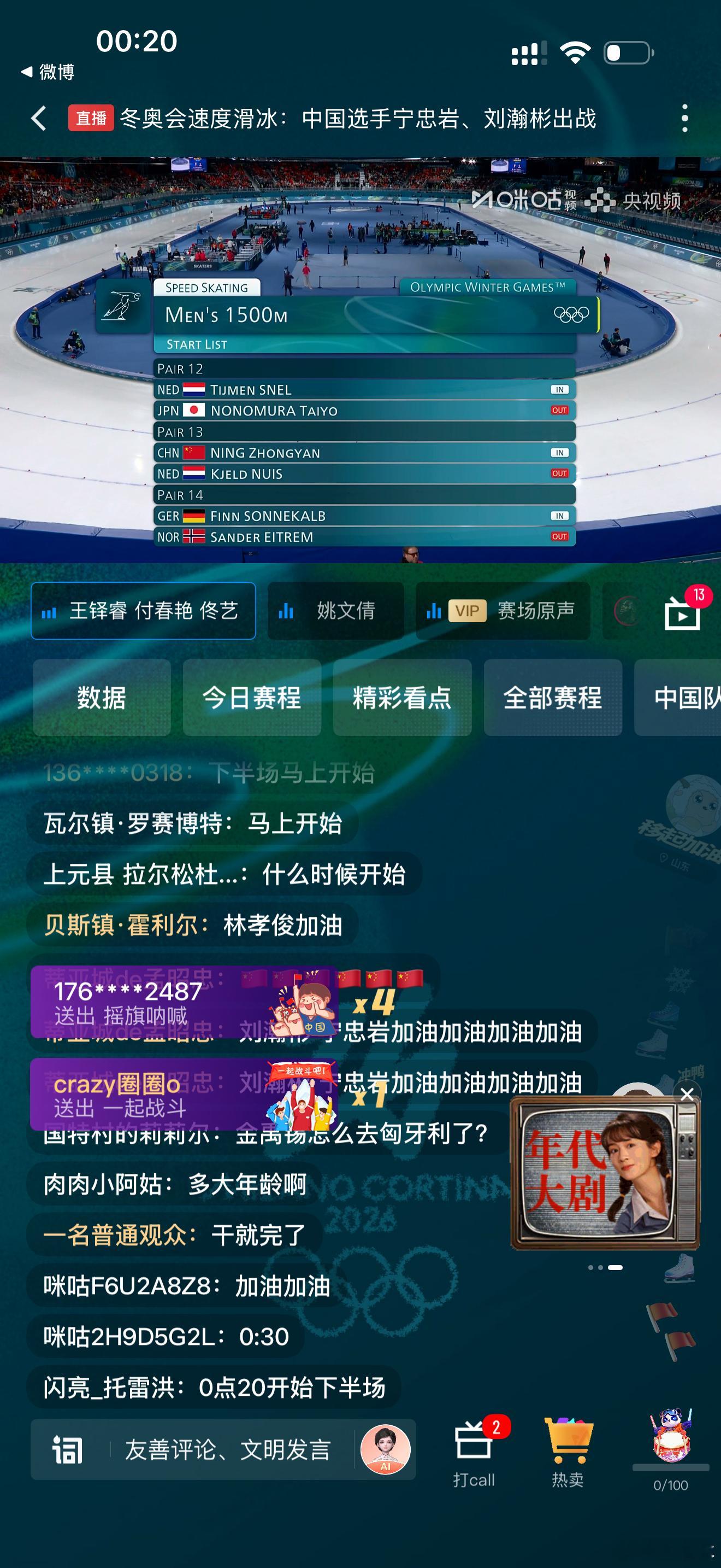 李天马这会是-6 如果能进决赛就是决赛天时好 加油哎过年太忙哦不能好好看 孙佳旭