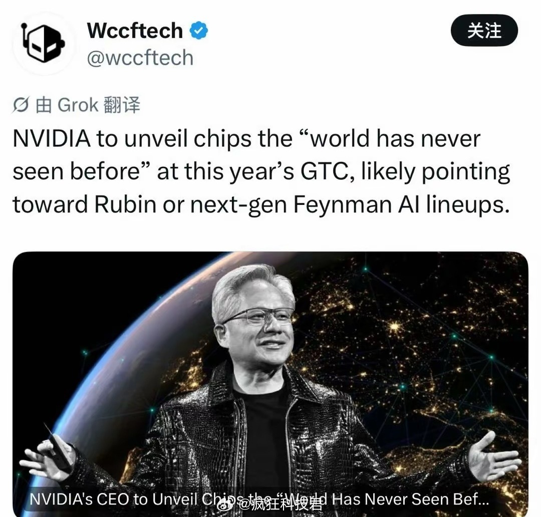 英伟达要搞大事!GTC 2026要发“世界从未见过”的AI芯片,黄仁勋自己也说了,现在技术都逼近极限了,研发难度拉满,能搞出来绝对是狠活。英伟达现在就是AI算力的“扛把子”,从Hopper、Blackwell到现在的新品,一直在跟着AI算力的需求迭代。这次说“世界从未见过”,估计又是一次技术爆炸,不管是训练大模型还是推理场景,都能再上一个台阶。数码资讯
