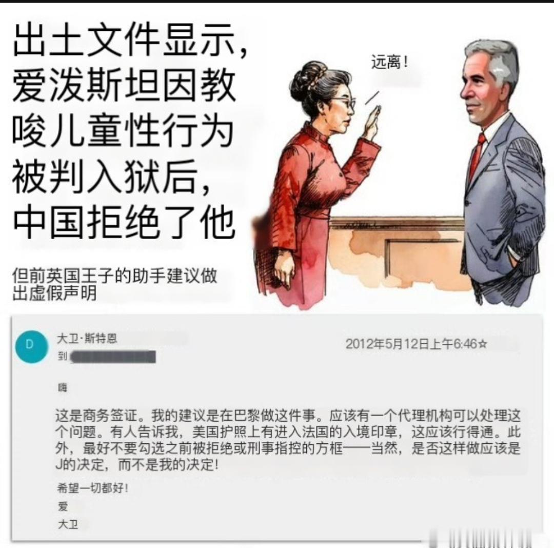 爱泼斯坦想来中国,结果没给他签证,因为我们知道他是个什么货色。 英国前王子的助理建议他弄虚作假搞欺诈。 看来他们都是老手了。 他们可以在世界其他地方为所欲为,但是在中国,他都没有机会进入中国。 这就是独立自主的优势。 点右上角关注我,我们一起去看这个魔幻的世界