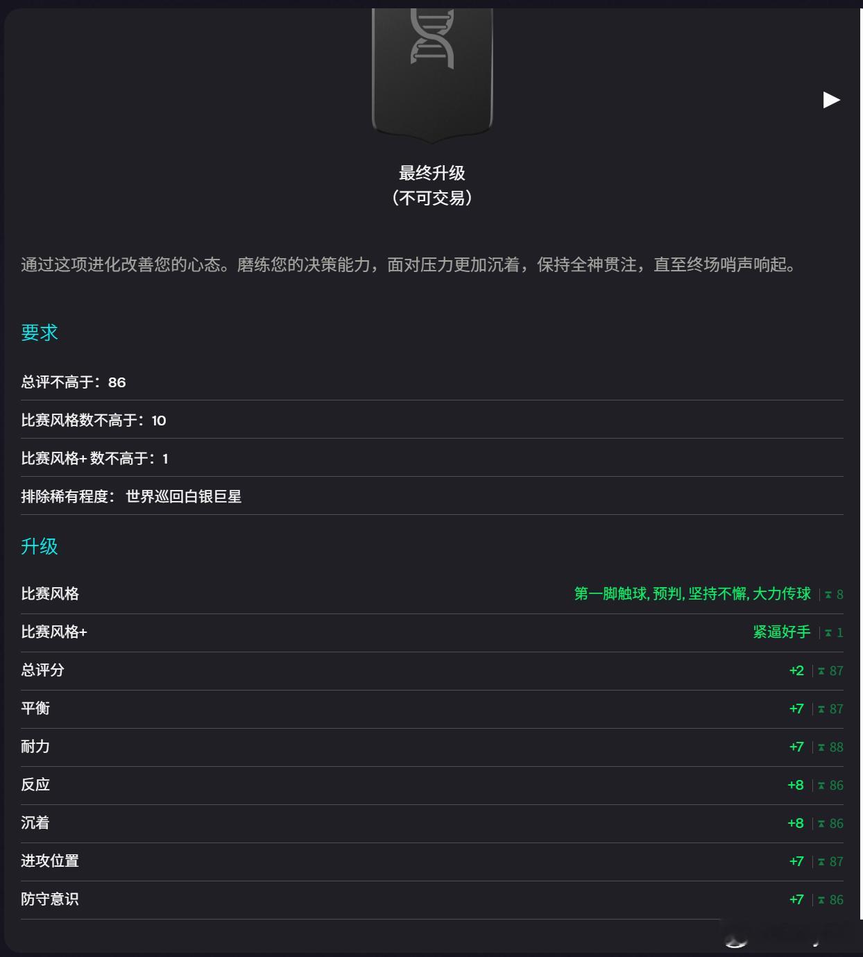 新的ST位置进化泄露OVR Max 87进化可获得:✦ 属性提升✦ 大力低射+