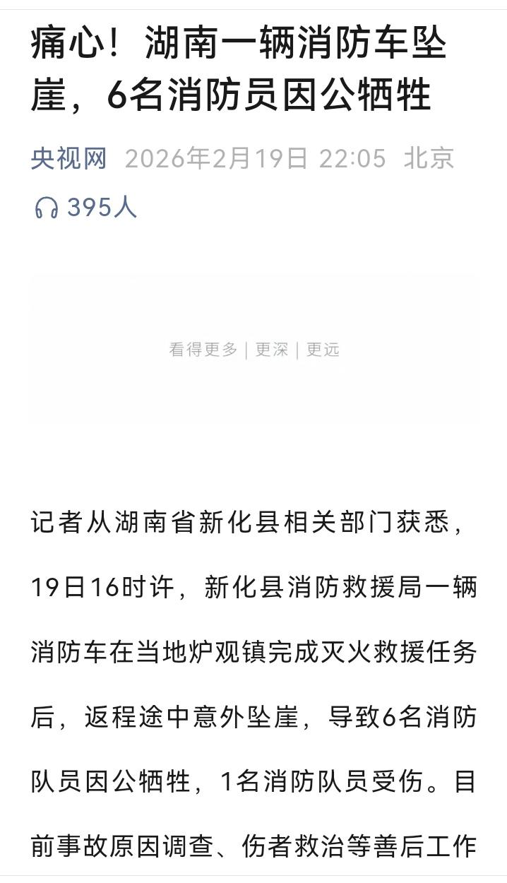 痛心!湖南消防车坠崖6人牺牲,这个消息太沉重了 刚才打开手机,被这条新闻刺痛了眼睛。 湖南,一辆消防车在执行任务途中坠崖,6名消防员,全部因公牺牲(详见附图)。 6个人。 他们是谁的儿子?又是谁的父亲?是谁的丈夫? 我们不知道他们的名字,但我们知道他们有一个共同的身份——人民的守夜人。 大过年的,刚完成救火任务,在归途中,突然就成了定格。 还没来得及想,还没来得急怕,使命就戛然而止。 哪有什么岁月静好,不过是有人替我们负重前行。 这句话我们说了无数遍,可每一次读到这样的新闻,心还是会被狠狠揪一下。 他们也是血肉之躯,他们也会疼,他们也有牵挂的家人。 可警铃一响,他们奔向的,永远是那个最危险的方向。 致敬! 这6位英雄,一路走好。 愿天堂没有火灾,没有抢险,没有出警。 也希望所有还在奋战的消防兄弟们,每次出警,都能平安归来!六人遇难