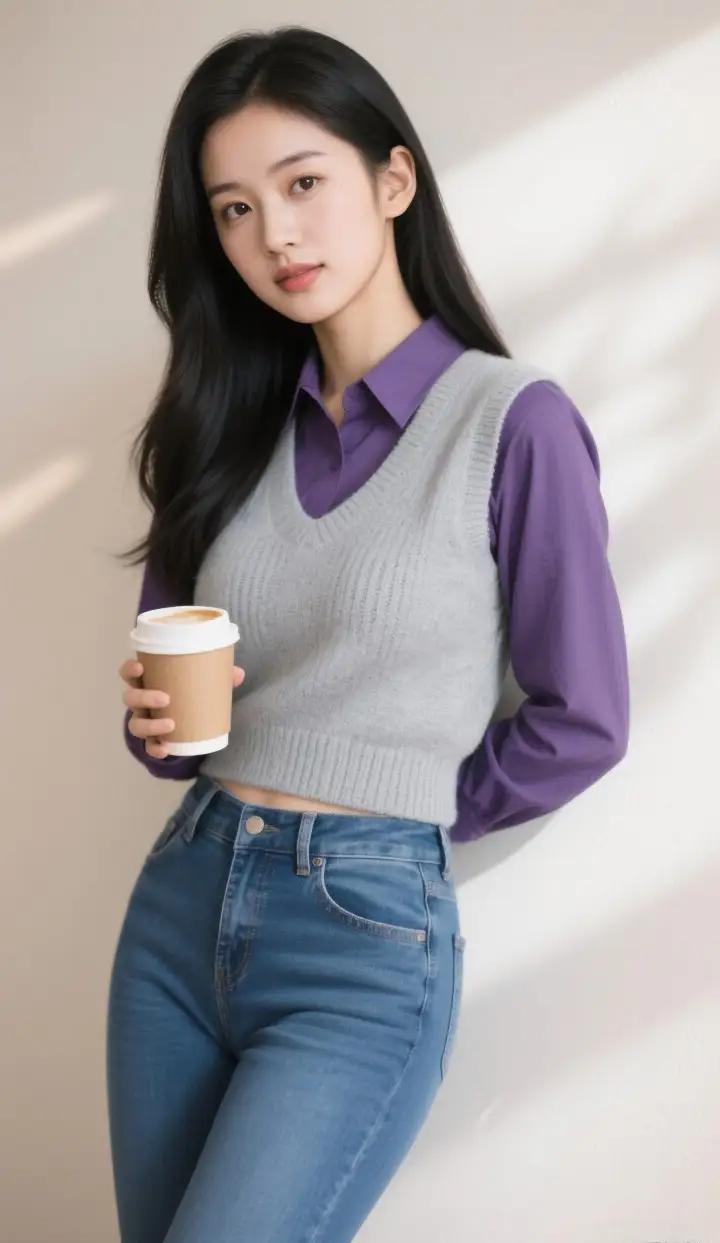 温柔甜美的少女,白皙肌肤,自然妆容,散发着优雅的气质。少女感满满的女明星,你最喜