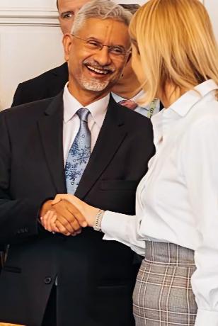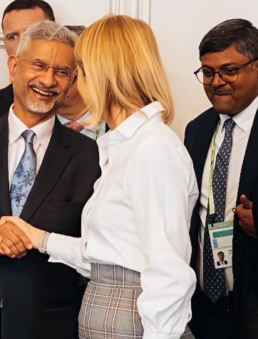 印度外长苏杰生见到欧盟外长卡拉斯这么开心吗? 苏杰生和卡拉斯两人在交流什么话题呢? 苏杰生满脸笑容是不是从侧面说明了,两人交流的很愉悦啊?