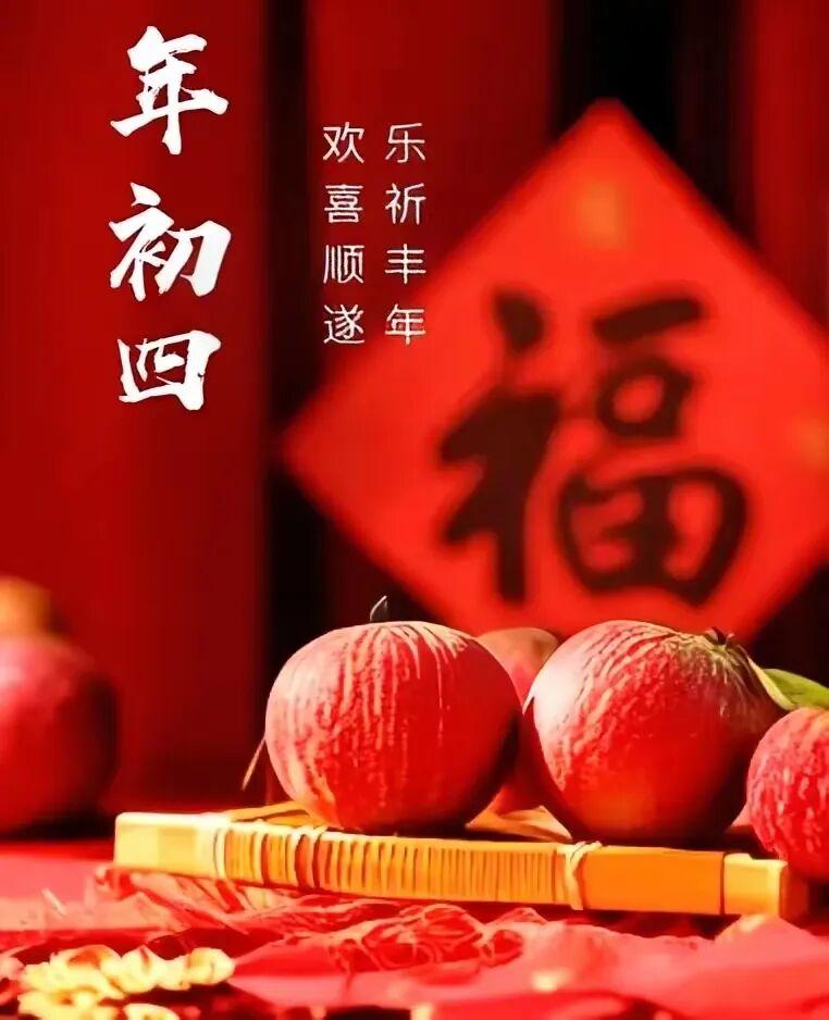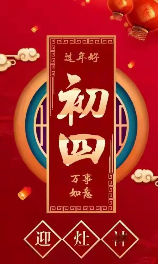 大年出四福门开 愿你好运天天来 大年初四拜个年 吉祥如意日子甜 大年初四许个愿 前程似锦全实现 大年初四送祝福 喜乐平安财满屋 大年初四愿您 家庭和睦,爰情如蜜 亲情浓厚,真心实意 家人之间,情同手足 爱人之间,情感牢固 朋友之间,相互帮助 一切都是温馨祥和的 人人都是心真意诚的