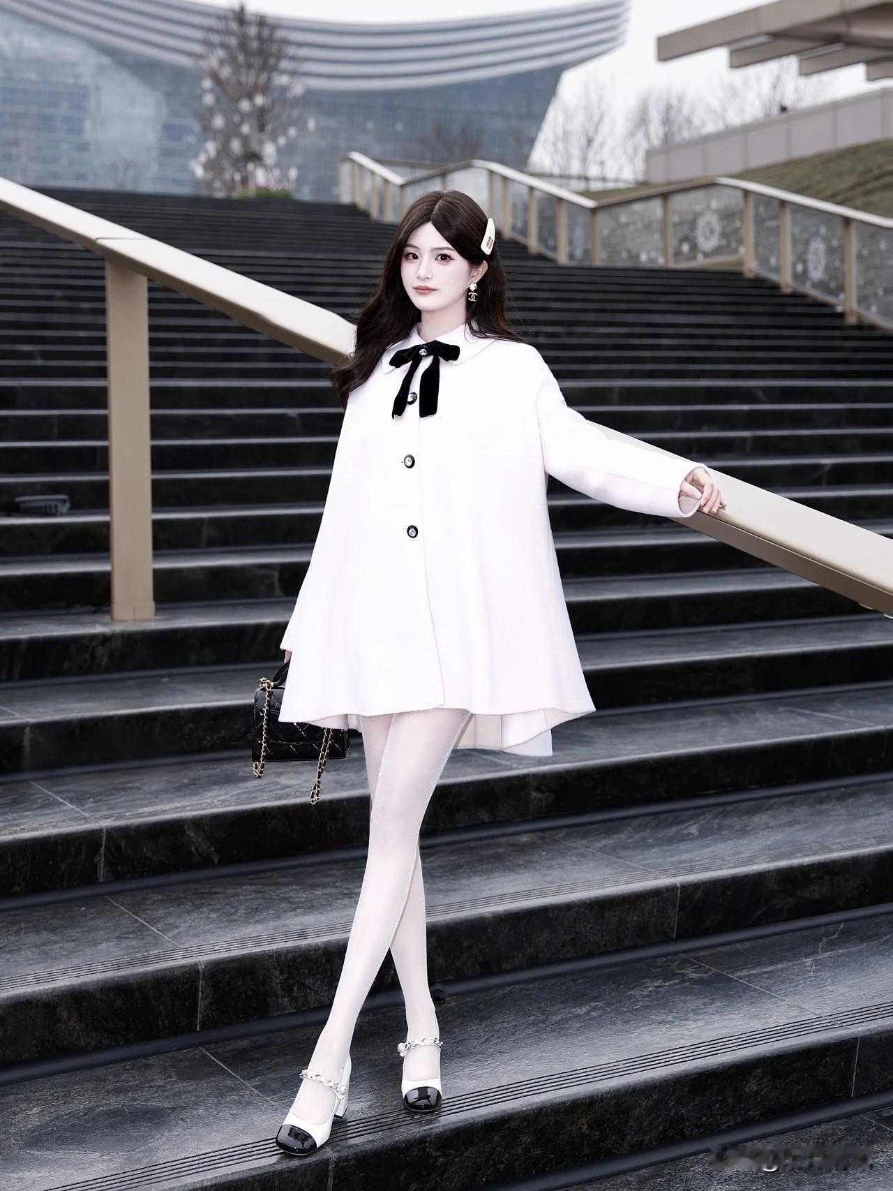 看到这套穿搭真的被狠狠美到了!😍 白色斗篷外套毛茸茸的,像把云朵穿在身上。领口那个黑色蝴蝶结特别戳我——不是那种甜腻的感觉,反而有点小俏皮,像夜空里突然闪了下星星✨ 再看细节,白色丝袜带了点细闪,阳光下应该会发光吧?搭上那双拼色玛丽珍鞋,黑白配得刚刚好,复古又不会老气。 怎么说呢,整体干干净净的,但就是让人挪不开眼。像月光轻轻柔柔照在身上那种感觉,温柔到骨子里了。减龄效果也绝了,不是硬凹少女感,是那种从里到外的轻盈。 救命,这种白月光穿搭谁能顶得住啊! 新年爱好打卡白月光 时尚穿搭