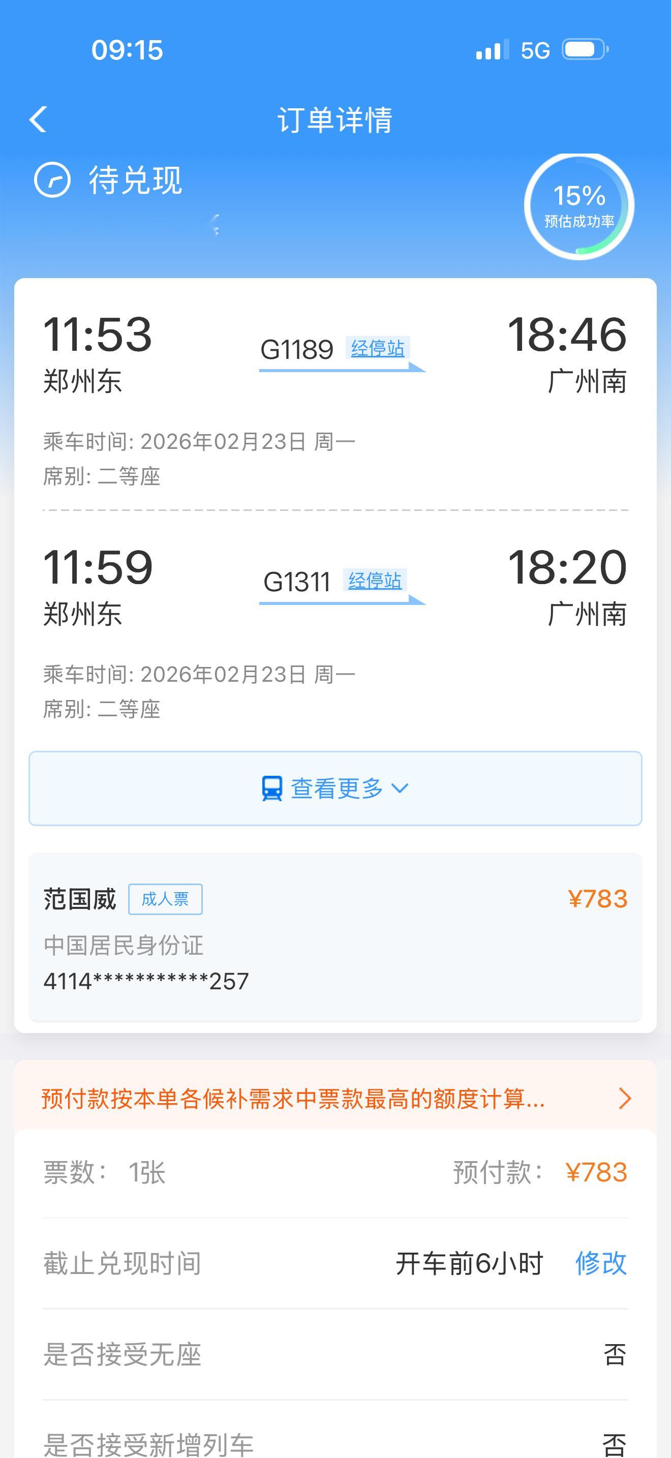 回深圳的票,还没有候补成功,这个班,我可能要迟到了