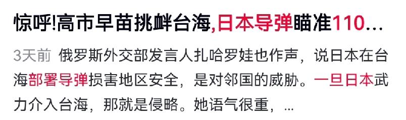 日本将导弹部署到距我仅110公里处,直接抵近家门口!俄媒直言:一旦开战,周边必将沦为群狼趁火打劫之地。面对挑衅,福建舰电磁弹射战力拉满、东风系列导弹枕戈待旦,一旦出手便是饱和打击,直接清零对方战争潜力,让一切趁虚而入的图谋,彻底变成自寻死路。 俄媒一针见血戳穿东亚地缘真相:现代战争从不是单挑,而是环环相扣的围猎。日本甘当美国印太战略马前卒,妄图牵制遏制我国;一旦我方陷入消耗,南海方向就会点火滋事,美国更会动用金融收割、芯片断供、舆论围堵等手段全面发难。 和平从来不是妥协退让换来的,而是靠硬实力打出来的。真正的战略威慑,是让对手明白,任何挑衅都会招致摧毁根基的反击。东风导弹慑止关岛、稀土资源牢牢在手、全产业链体系更是压舱底牌,西方制裁不过是伤敌八百自损一千的七伤拳。 俄媒“打得一拳开,免得百拳来”,道破大国博弈核心。唯有以降维碾压的实力,让挑衅者算清代价、望而却步,才能彻底斩断觊觎之心。和平不靠乞求,只靠实力铸就,敢战方能止战! 对此你怎么看?