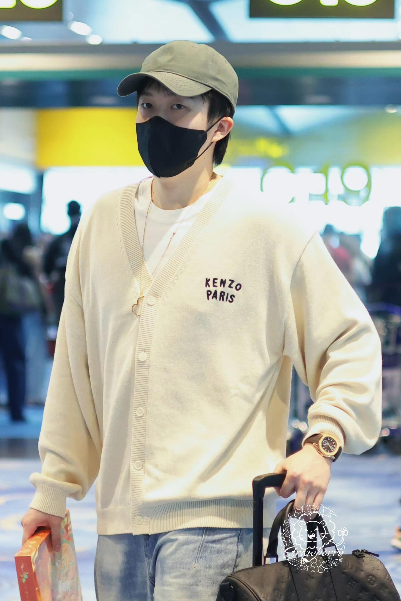王楚钦最新机场Look演绎LouisVuitton、Qeelin、Kenzo单