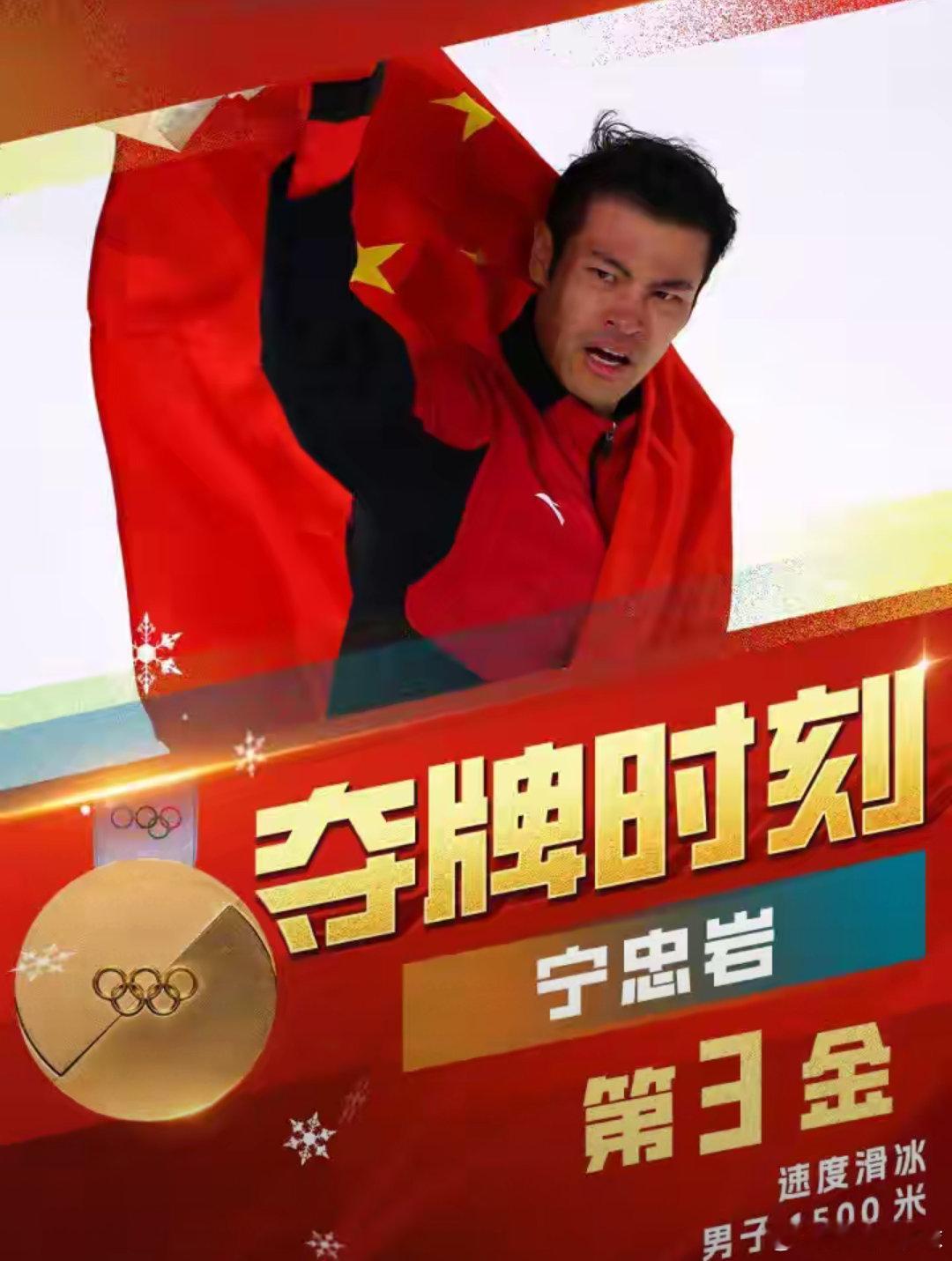 冬奥会中国第3金!奇迹:宁忠岩破奥运纪录夺冠,升国旗奏国歌宁忠岩金牌 北京时间2月20日凌晨,米兰冬奥会速度滑冰男子1500米决赛上演巅峰对决。中国选手宁忠岩以1分41秒98强势夺冠,打破奥运纪录,为中国代表团拿下本届赛事第三金!本场比赛,宁忠岩在第13组出战,全程节奏完美、后程疯狂冲刺,以压倒性成绩刷新刚诞生9分钟的奥运纪录,领先美国名将斯托尔兹0.77秒,终结对手三冠梦想。荷兰选手分获二、三名。这是中国速滑男子1500米冬奥历史首金,实现历史性突破。宁忠岩本届冬奥已斩获1金2铜,成为单届冬奥拿3枚奖牌的中国速滑第一人。冲线瞬间,全场沸腾;颁奖仪式上,五星红旗冉冉升起,义勇军进行曲响彻赛场。中国冰雪再添传奇一刻!