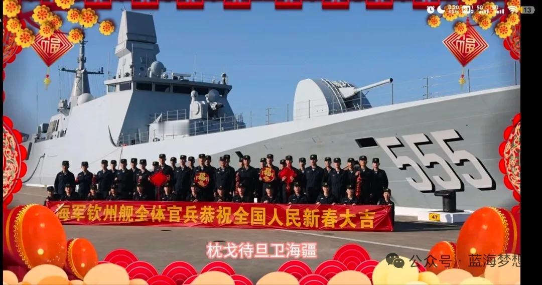 2月20日,近日,央视记者探访054B钦州舰,全体官兵给全国人民拜年啦! 054B钦州舰属于护卫舰,排水量5000吨,性能指标非常先进,是新一代导弹护卫舰。[赞][赞][赞][赞][赞][赞][赞]