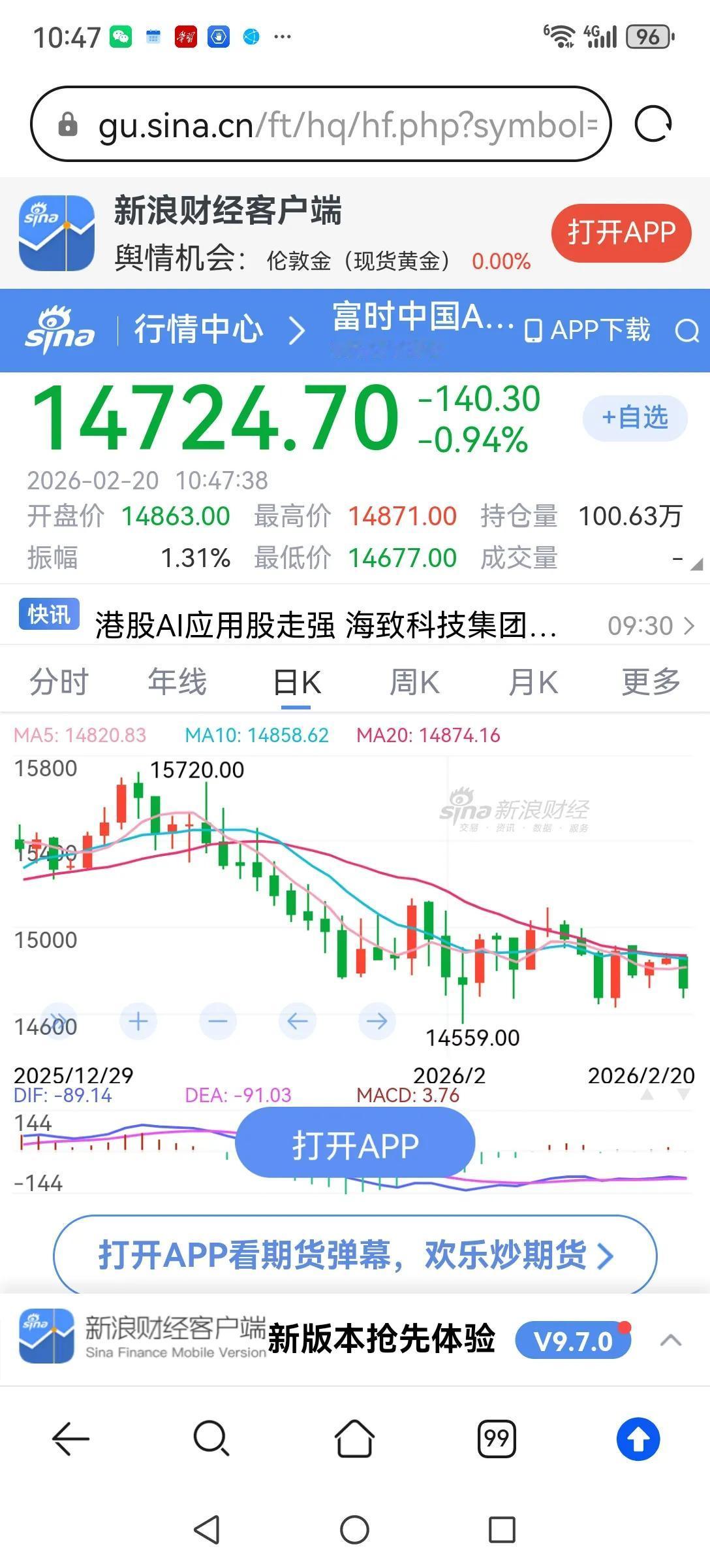今天港股开盘下跌,A50下跌,看来不管你韩股怎么大涨,也不管外围股市怎么创新高,也掩盖不了港股和A股的弱势。因此,马年的股市投资还是要从防守开始,不可盲目乐观冒进!
