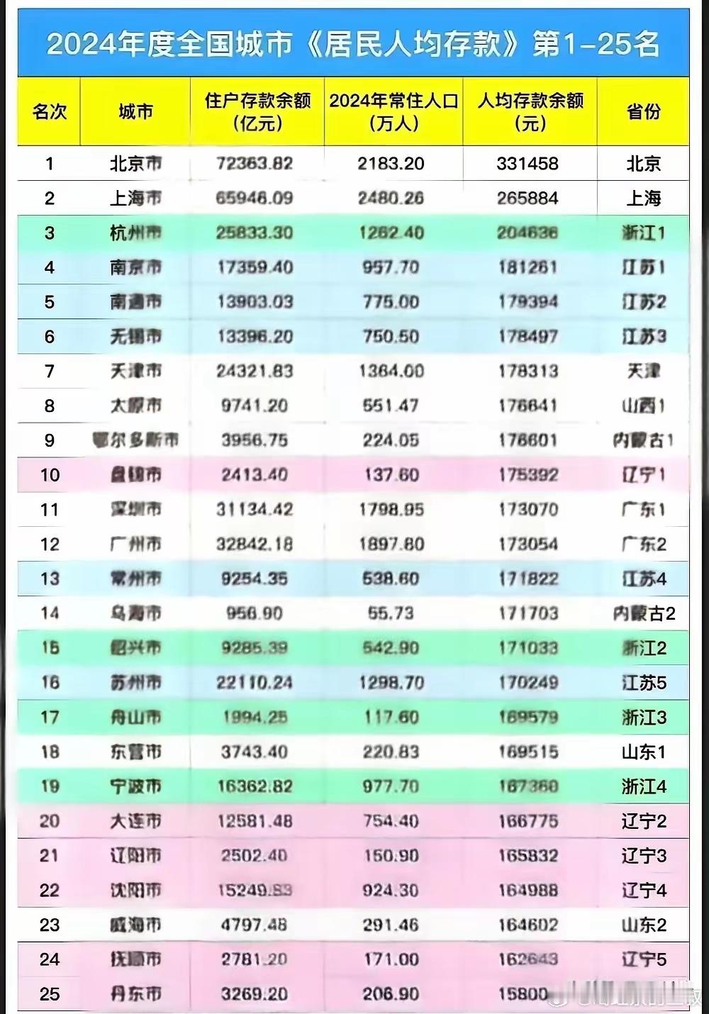 从人均住户存款看,国内各省的收入差距远没有想象那么大。东北是国内第一方阵。
