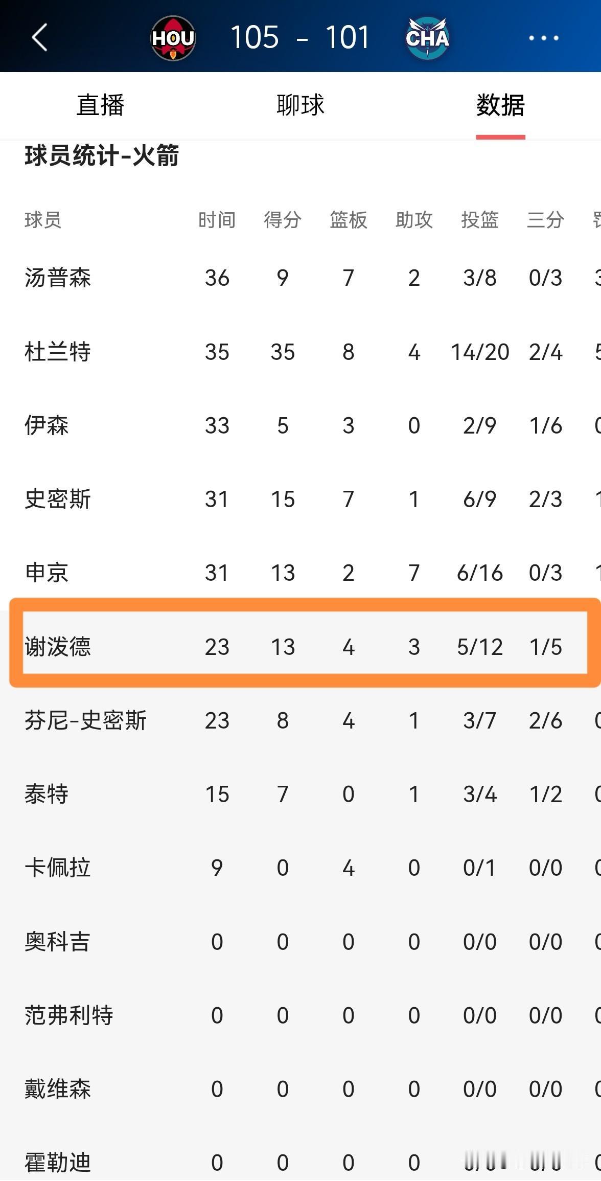 火箭新星谢波德的场上正负值真是太高了!在今天火箭客场以105:101击败黄蜂的比赛中,谢波德替补出战23分钟,投篮12中5,其中三分球5中1、罚球2中2得到13分,外加4篮板3助攻1抢断2盖帽,他的场上正负值为全队最高的+11。 实事求是的说,谢波德今天的表现真是对得起他的高顺位,他在攻防两端都打出了无可挑剔的表现。