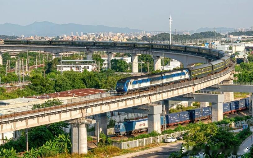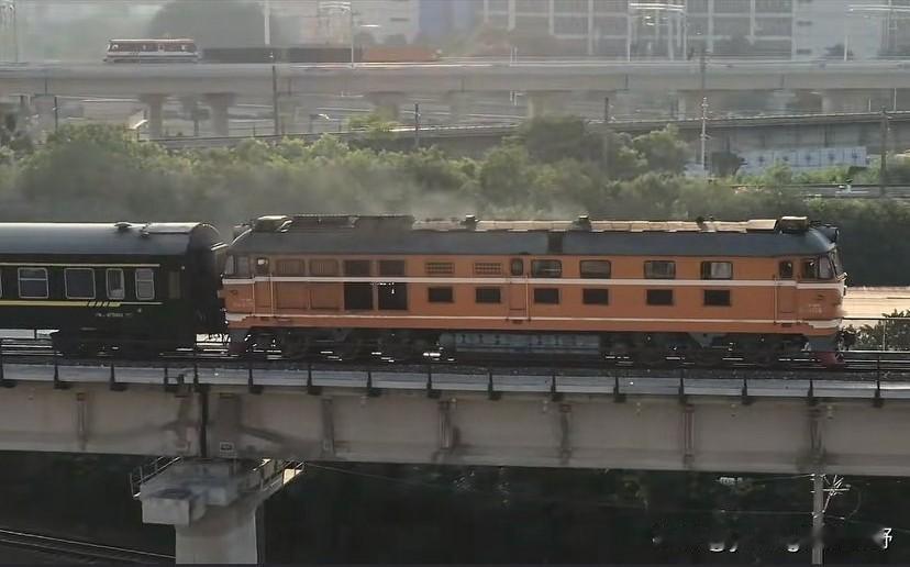 广州铁路枢纽之江大联络线。这条线路连通广茂铁路与京广铁路,往广茂铁路方向的客货运列车都需要从此联络线上绕行。因联络线跨越京广铁路,所以在此形成了一个较大的坡度和弯道。此处也是内燃机车上演他们气势磅礴的一面。在此可以看到每一台机车咆哮着发出轰鸣的声响,喷出浓密的尾烟,牵引一长串客车车底在桥上画出一个完美的弧形。所以此处曾也是广州地区看火车最壮观的地方。后期随着此联络线完成了电气化改造,在电线杆和接触网的影响下,拍车的画面也就没有那么干净,漂亮,壮观了。