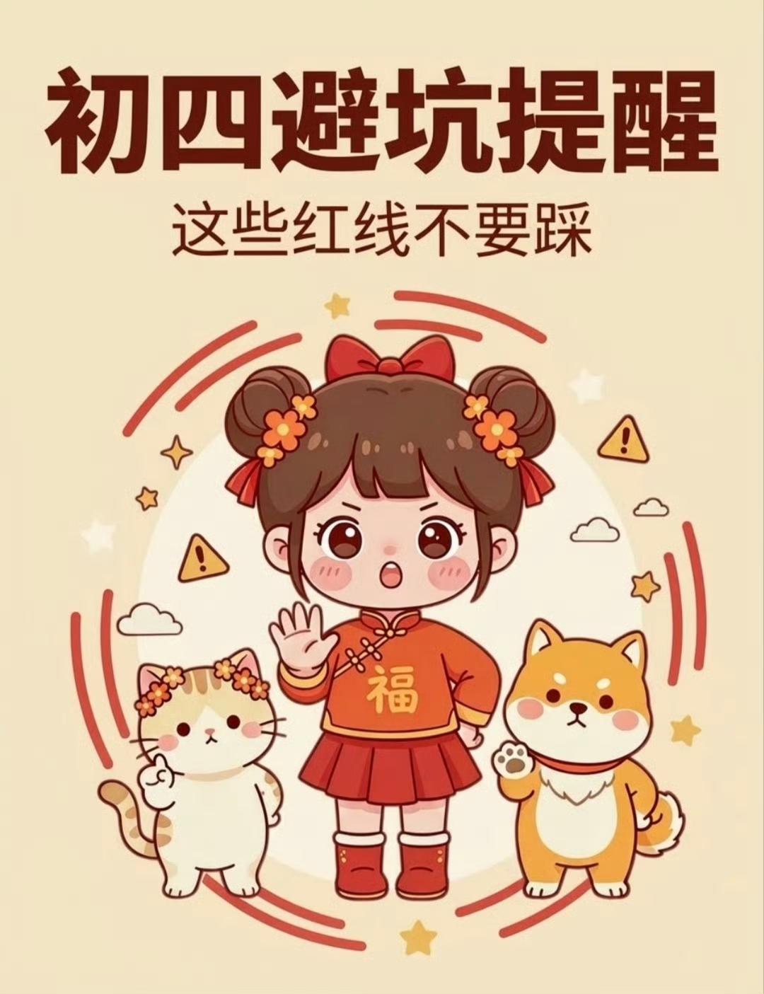 大年初四迎福纳祥,花开富贵喜满堂。财源滚滚阖家欢,平安如意岁岁昌。传统文化 祝福
