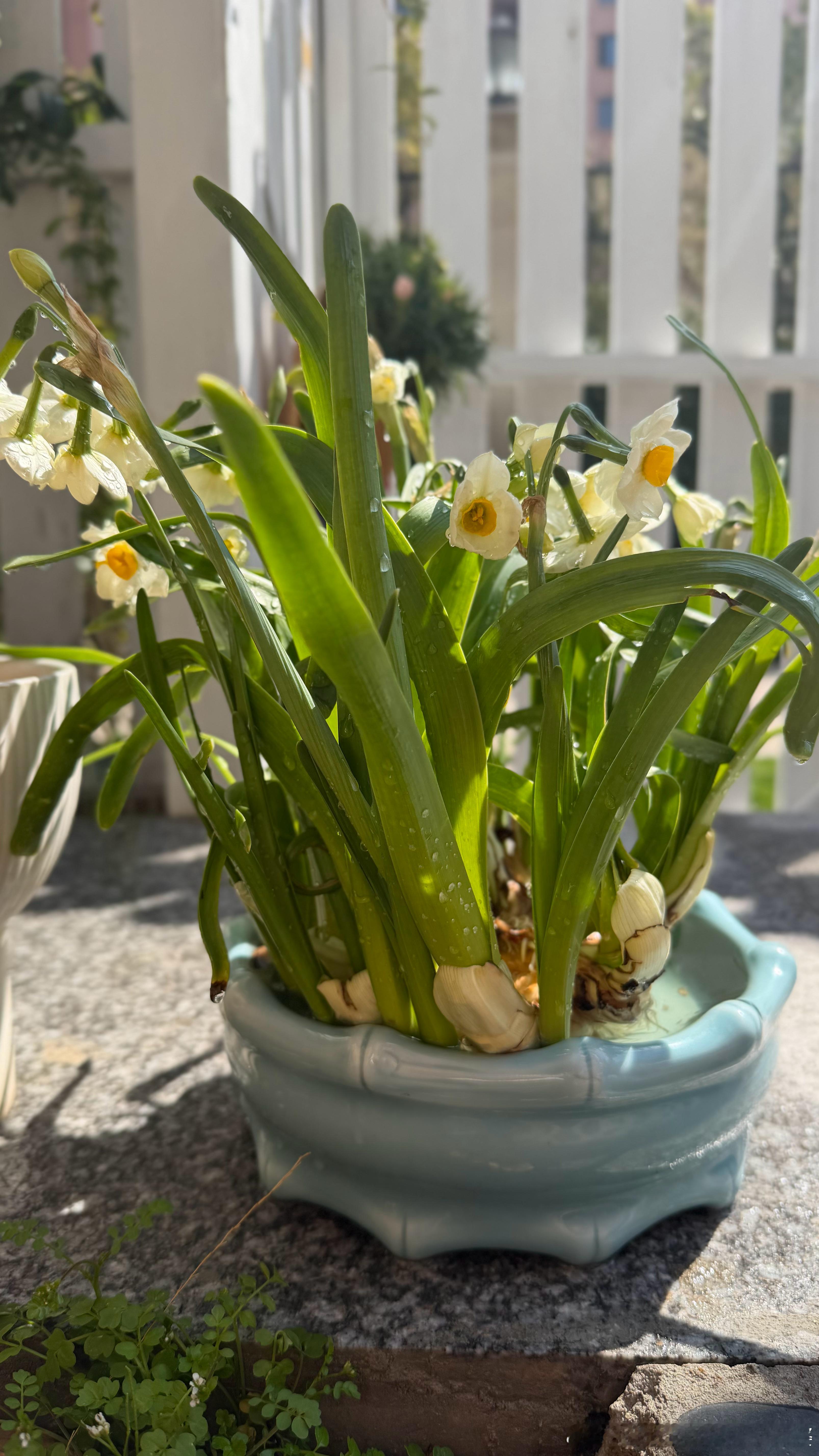 坐在柚子树树荫下,看着水仙在阳光里慢慢开花。春日万里无云。徐徐的暖意被炽热的日头,糖一样融化在凉凉的风里。我和某人的日常