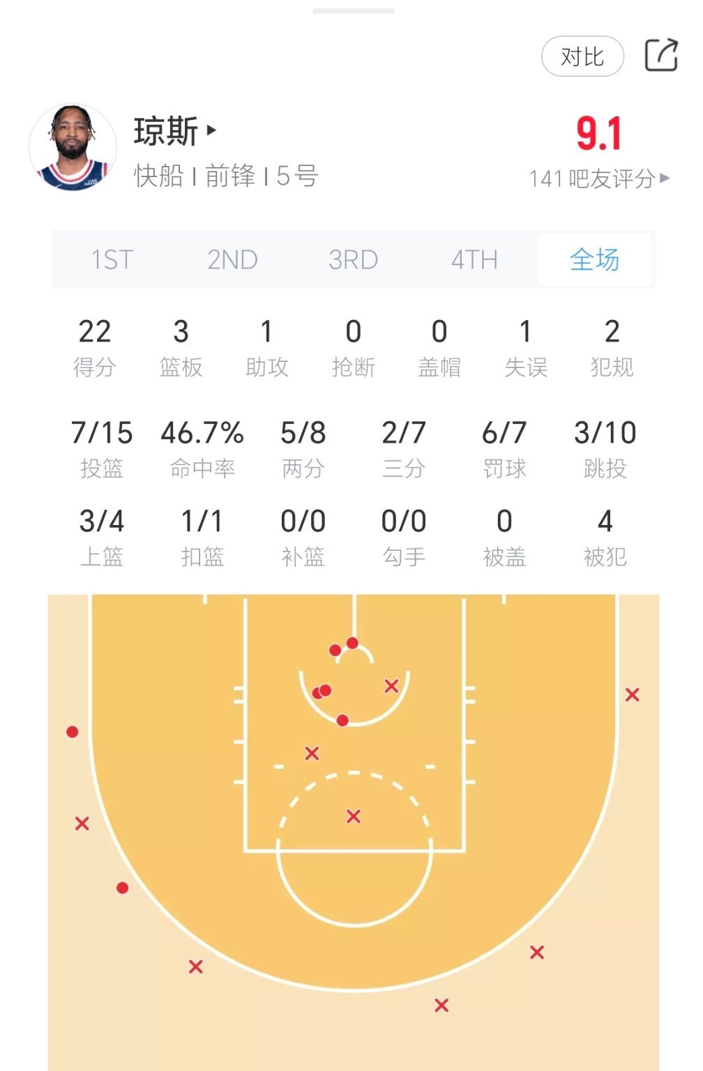 马瑟林今日表现!替补出战34分钟,投篮22中12,三分6中2,罚球13中12,得