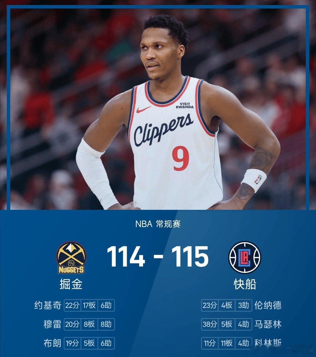 掘金vs快船nba 快船115-114战胜掘金。马瑟林砍下全场最高的38分5板4助,率领快船成功取胜。