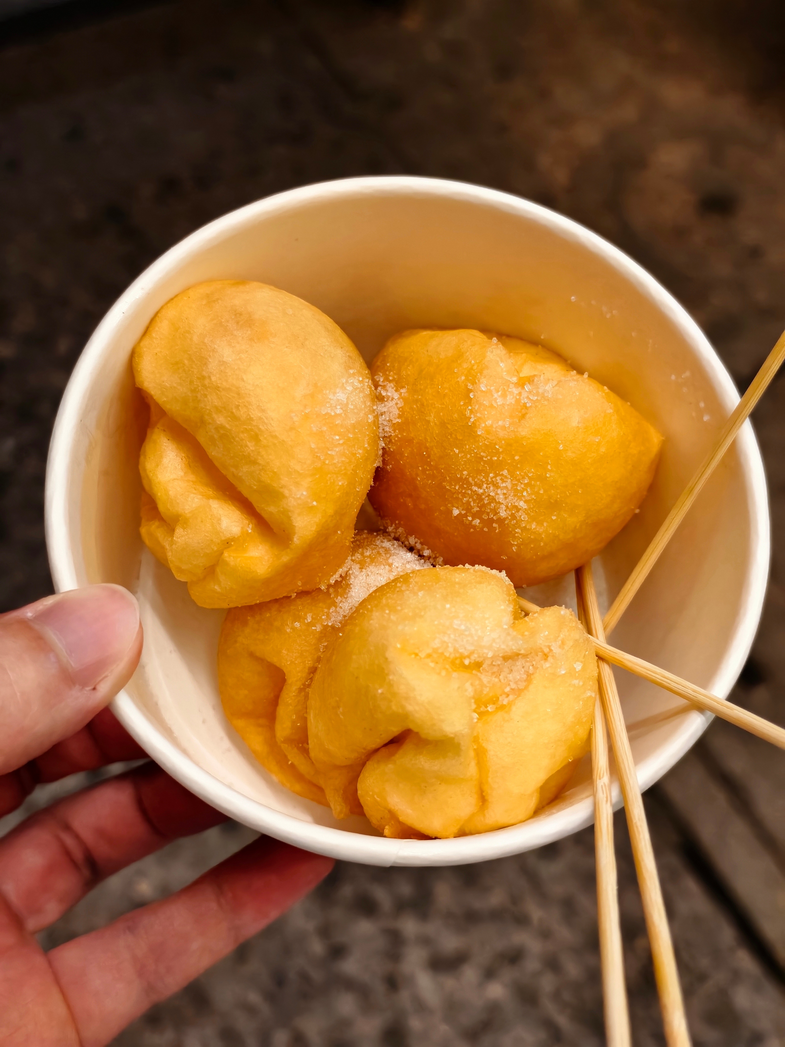 第一次来台州临海,在紫阳街吃到了传说中的嵌糕(图三,米皮裹成一个大饺子形状,里面是各种馅料)、蛋清养尾(图四,蛋清打发泡以后裹着豆沙馅炸的),还有泡虾饼(感觉是油饼里面放了虾馅料)、小林铁板烧(很咸,不建议多点)。