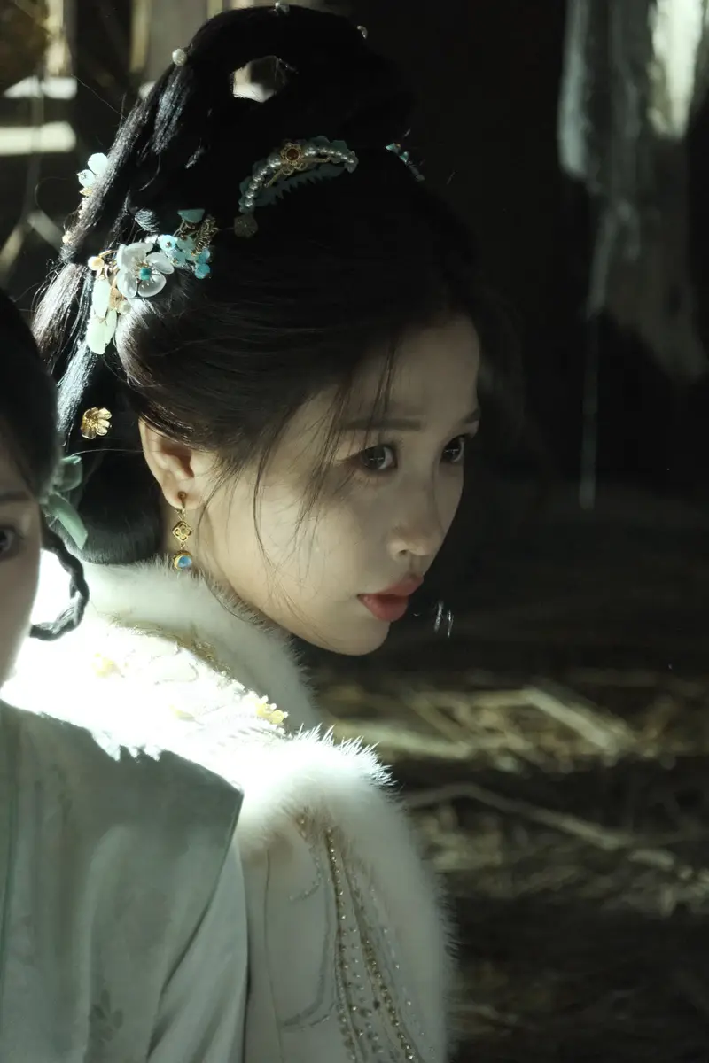 虞书欣穿白色襦裙端庄矜贵双手托腮表情灵动可人